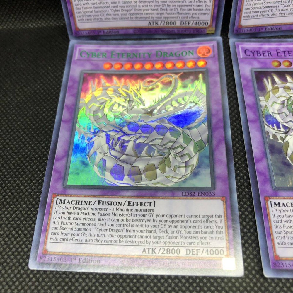 Item Title Yu-Gi-Oh! English Version Cyber Eternity Dragon Colorful Ultra Lds2-En033 1 Ea Payment Supports managed payments Please pay within 5 days after auction is finished. About Us We are located in Japan. It's our pleasure to make you happy by proposing our recommend item. If you have any questions or request about items, please feel free to ask us. International Buyers - Please Note: -Import duties, taxes, and charges are not included in the item price or shipping charges. These charges are the buyer's responsibility. -Please check with your country's customs office to determine what these additional costs will be prior to bidding/buying. -These charges are normally collected by the delivering freight (shipping) company or when you pick the item up - do not confuse them for additional shipping charges. -We do not mark merchandise values below value or mark items as - gifts - The US and International government regulations prohibit such behavior. Thank you for your understanding.