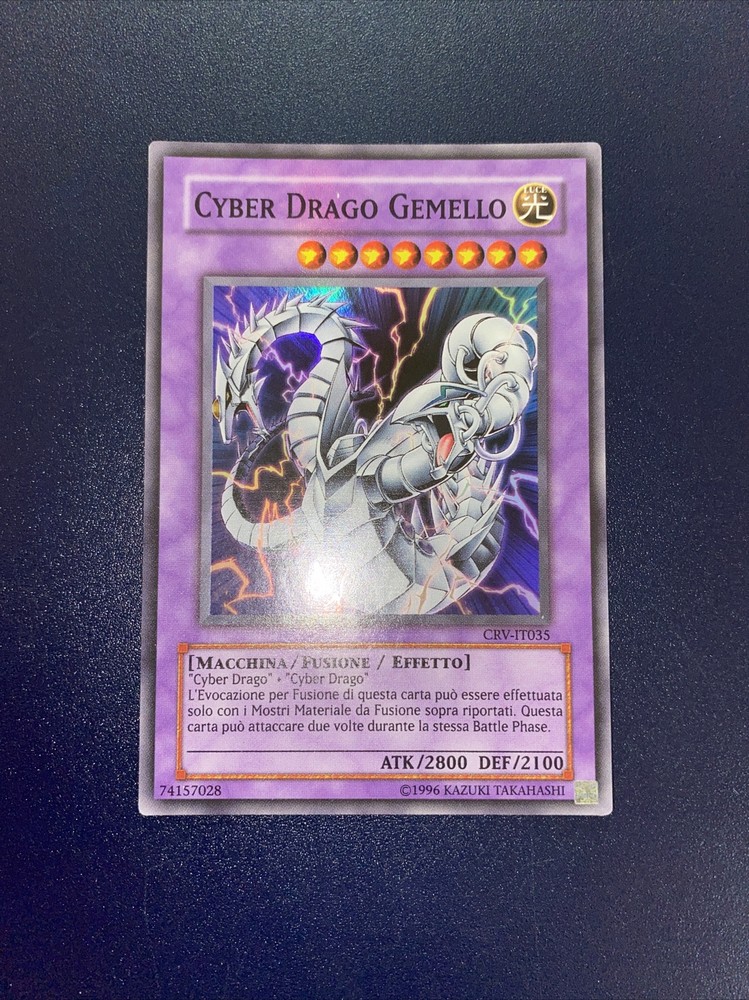 Yu-Gi-Oh! Ita Super Rare Cyber Dragon Twin Crv-it035 Yugioh The description of this item has been automatically translated. If you have any questions, please feel free to contact us. WELCOME CONDITIONS: Paper in photo, scroll through the images EXPLORE OUR YU-GI-OH PRODUCT SECTION! SEAL YOURSELF AND GET INSPIRED. Click here! https://www.ebay.it/str/ne4r07yugiohitalia/Prodotti-sigillati/_i.html?store_cat=34734427017 ARE YOU LOOKING FOR ACCESSORIES TO PROTECT YOUR COLLECTION? Click on the link: https://www.ebay.it/str/ne4r07yugiohitalia/Accessori/_i.html?store_cat=34734420017 (if they do not join automatically by adding the products to the cart) 1 Add to your cart (without clicking the 'Buy Now' button) all the cards you wish to purchase. 2 Open the eBay cart page 3 Click the 'Request Total From Seller' button. THIS PROCEDURE IS ONLY POSSIBLE VIA PC. IT DOES NOT WORK WITH APP / TABLET / SMARTPHONE. 4 When the total has been correctly combined, we will send you a message/email and you can proceed with the payment by going to the cart. PRICES AND SERVICES AT THE END OF THE DESCRIPTION PACKAGES: We prepare packages/envelopes in the best possible way, protecting the purchased products as best as possible. If by chance the item arrives different, damaged or with problems, contact us and we will provide you with all possible assistance. WARRANTY - INFO - CONTACTS WE GUARANTEE THAT ALL OUR PRODUCTS ARE 100% ORIGINAL. We have many cards/boxes/accessories for sale, also take a look at our ebay shop you might find something interesting. CLICK THE LINK ( https://www.ebay.it/str/ne4r07yugiohitalia ) For any doubts or questions, write to us without problems, we will reply as quickly as possible. THANKS FOR YOUR VISIT. SHIPPING: ITALY Post 1 confirms the delivery of the package Registered mail With tracking code and complete control of the trip. Courier express (GLS or tnt ) With tracking code and complete control of the trip. - If you have a preference on the type of courier, write us a message, otherwise we will do it. - Possibility of having the package delivered to a collection point, write to us if you need help looking for it EUROPE ( Combine shipping Priority No tracking Registered Shipment tracking Courier service Shipment tracking AMERICA, ASIA, OCEANIA AND AFRICA (Combine shipping) Priority No tracking Registered Shipment tracking Courier service AMERICA Shipment tracking Courier service all world Shipment tracking Courier service oceania Shipment tracking Cost may vary depending on the size and weight of the package. FOR ANY QUESTION CONTACT ME. Click on the link: https://www.ebay.it/str/ne4r07yugiohitalia/Accessori/_i.html?store_cat=34734420017 4 When the total has been correctly combined, we will send you a message/email and you can proceed with the payment by going to the cart. We prepare packages/envelopes in the best possible way, protecting the purchased products as best as possible. If by chance the item arrives different, damaged or with problems, contact us and we will provide you with all possible assistance. We have many cards/boxes/accessories for sale, also take a look at our ebay shop you might find something interesting. CLICK THE LINK ( https://www.ebay.it/str/ne4r07yugiohitalia ) For any doubts or questions, write to us without problems, we will reply as quickly as possible. - Possibility of having the package de Fascia di età 4+ Produttore Konami Set - Yugi - Lingua Italiano Materiale Carta consistente Illustratore Kazuki Takahashi Attributo, colore MTG Incolore Grado Scorri Le Foto Rarità Super rara Tipo di carta Effetto Condizione carta Esattamente Quella In Foto Nome della carta Presente Nel Titolo Numero della carta Presente Nel Titolo Gioco Yu-Gi-Oh! Finitura Standard