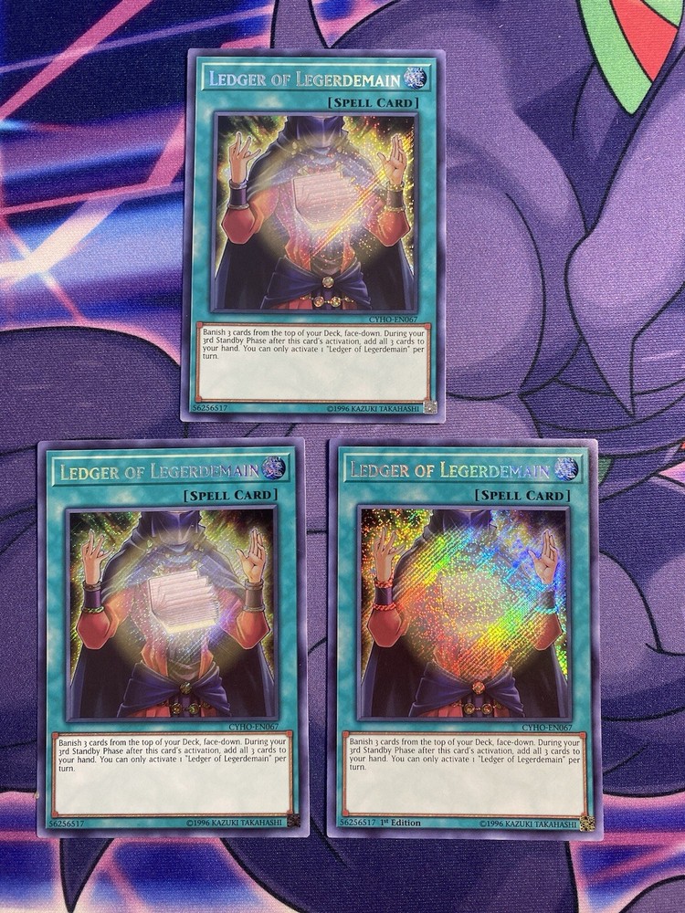 Playset includes two unlimited copies and one first edition. This Yu-Gi-Oh! TCG card is a must-have for any collector or player. With its Secret Rare rarity and stunning design, the Ledger of Legerdemain CYHO-EN067 x 3 PLAYSET is a valuable addition to any collection. The card features the powerful Dragon archetype and is perfect for players looking to dominate their opponents. The card is in excellent shape and has not been modified in any way. It is a great choice for anyone who wants to add a rare and sought-after card to their collection. Whether you are a seasoned player or just starting out, the Ledger of Legerdemain CYHO-EN067 x 3 PLAYSET is sure to impress.