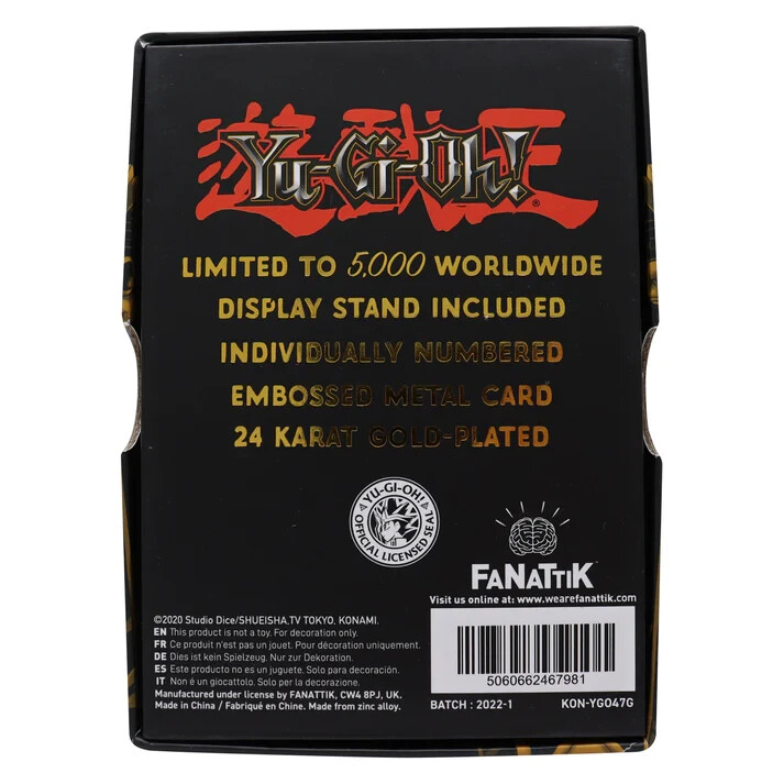 Yu-Gi-Oh! Limited Edition 24k Gold Plated Dark Paladin Metal Card RARE LE Dark Paladin can be seen on our highly detailed 24k Gold Plated Metal Card. This item is limited to only 5,000 worldwide and is individually numbered. Inside the presentation box there is also a display stand. BRAND NEW! PLEASE CHECK OUT MY OTHER LISTINGS AS I HAVE TONS OF OTHER YU GI OH RARE CARDS LIKE THIS! Thank you so much for looking and supporting small business! Please check out my Ebay shop and my other listings as I have tons of rare and cool items you may never know existed! No returns, exchanges or refunds. All sales final. Payment must be made within 24 hours, After 5 days of non payment, ebay will be notified and reported of non-payment buyer.