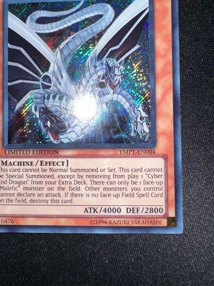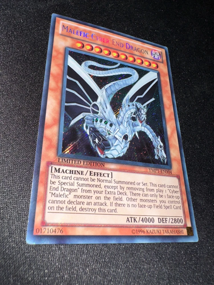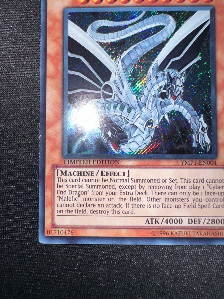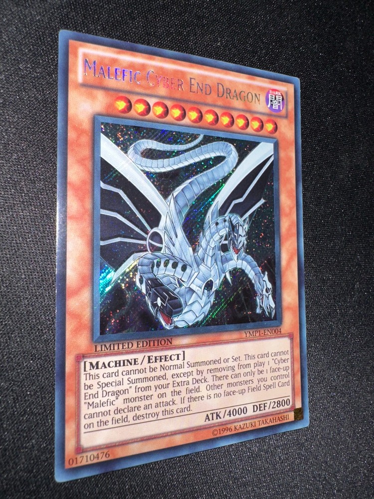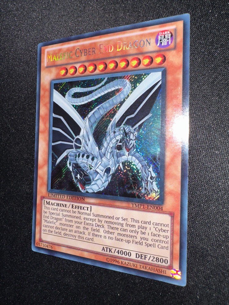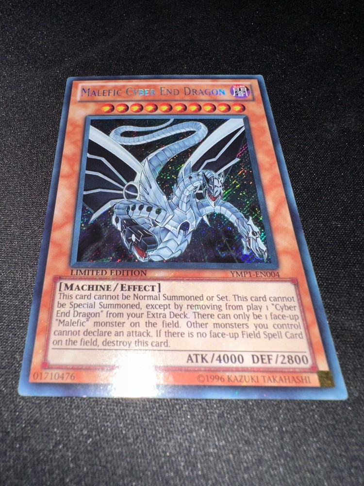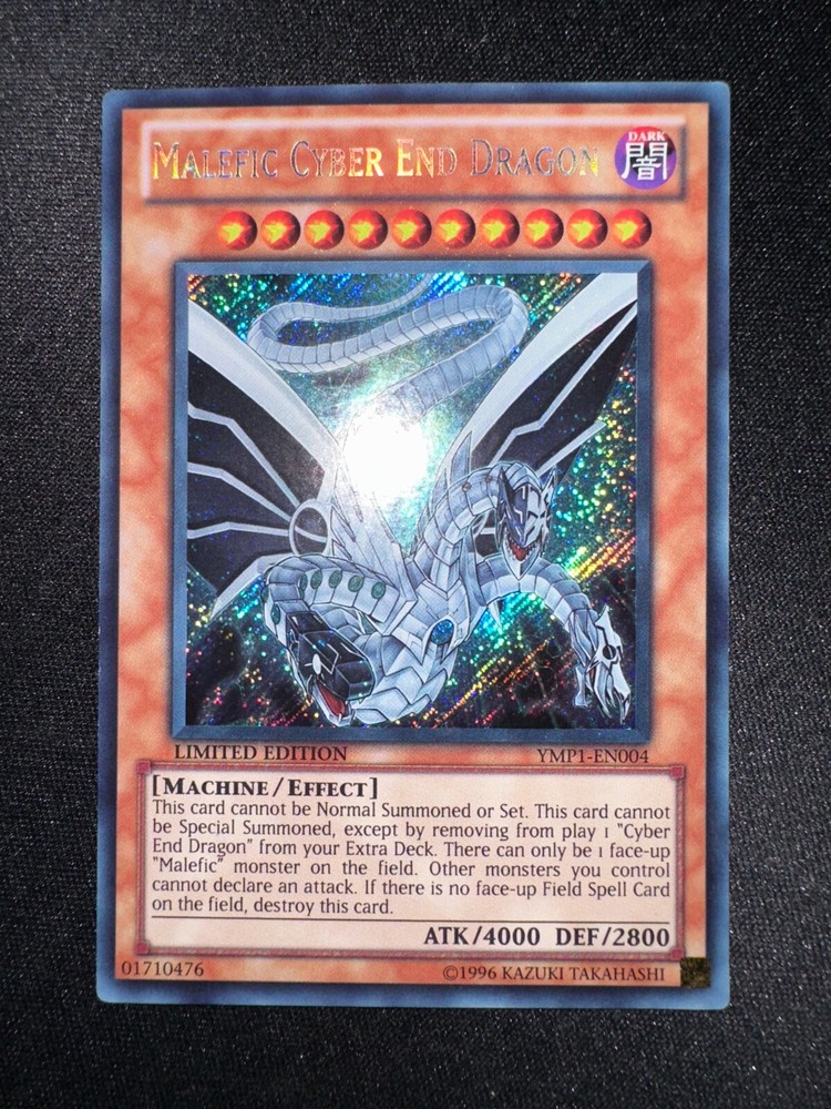 Yu-Gi-Oh! Malefic Cyber End Dragon YMP1-EN004 Secret Rare Holo YuGiOh Card - VLP Ultra Rare Limited Edition Malefic Cyber End Dragon Yu Gi Oh Card This card is in Very Light Played condition as shown in the pictures T he card is from the Yu-Gi-Oh! 3D Bonds Beyond Time Movie Pack set which was released in 2007 The card will be shipped with letter post in an envelope with postal stamp protected in a sleeve, toploader & team bag