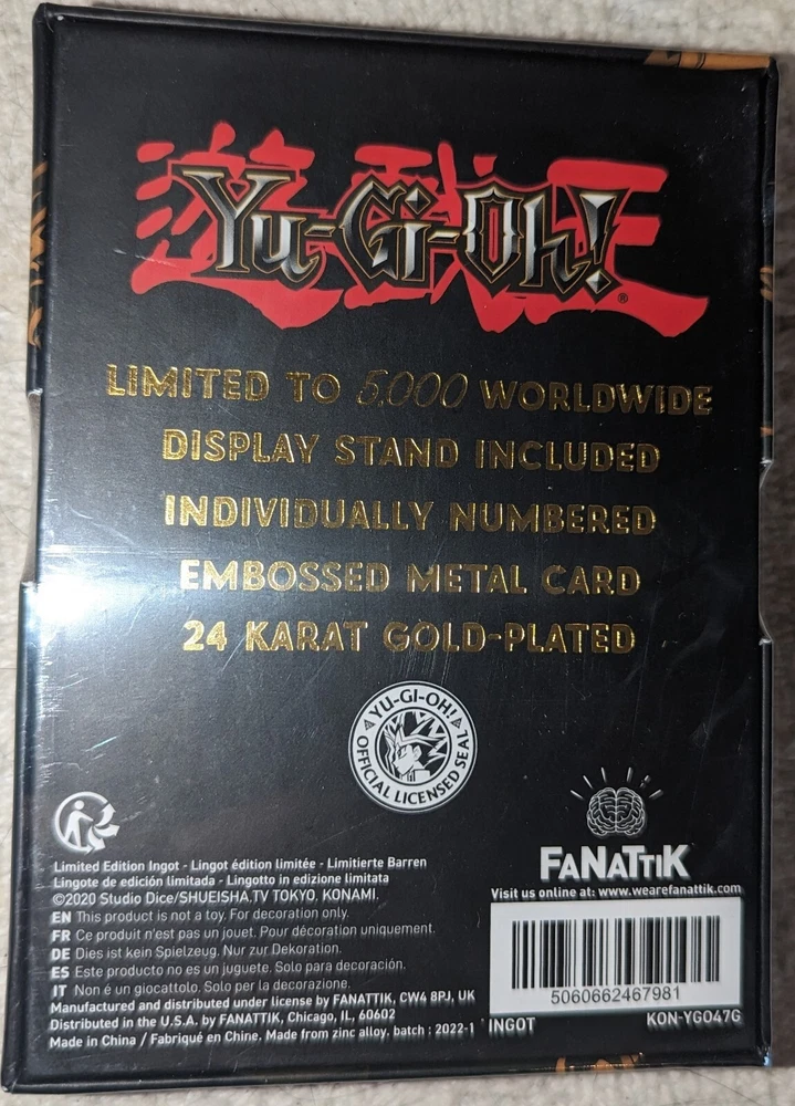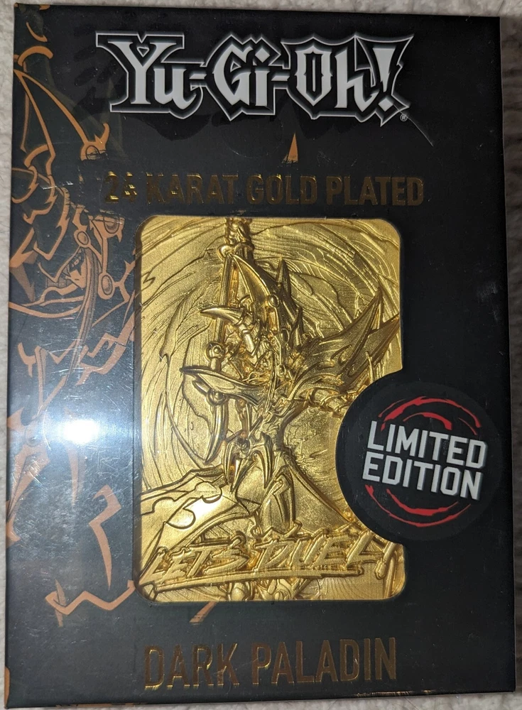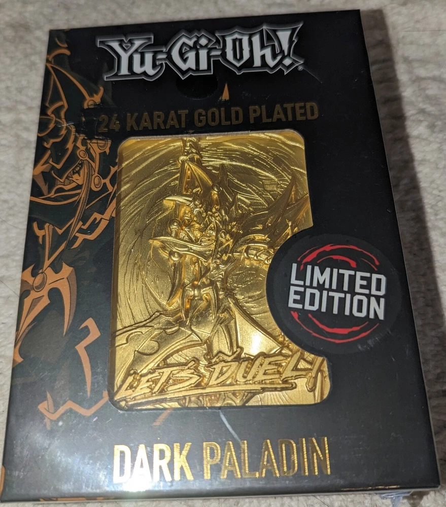 Brand new and dispatched from within the UK Yu-Gi-Oh! Replica Card Dark Paladin 24 karat gold plated Replicas: 1/1 scale Yu-Gi-Oh replica card Limited to 5,000 worldwide, heavily embossed on both sides, individually numbered highly detailed Fanattik 24k gold plated metal card. Supplied in a presentation box with a display stand.