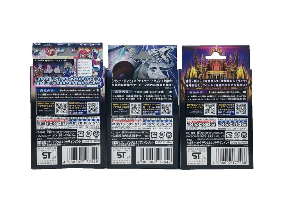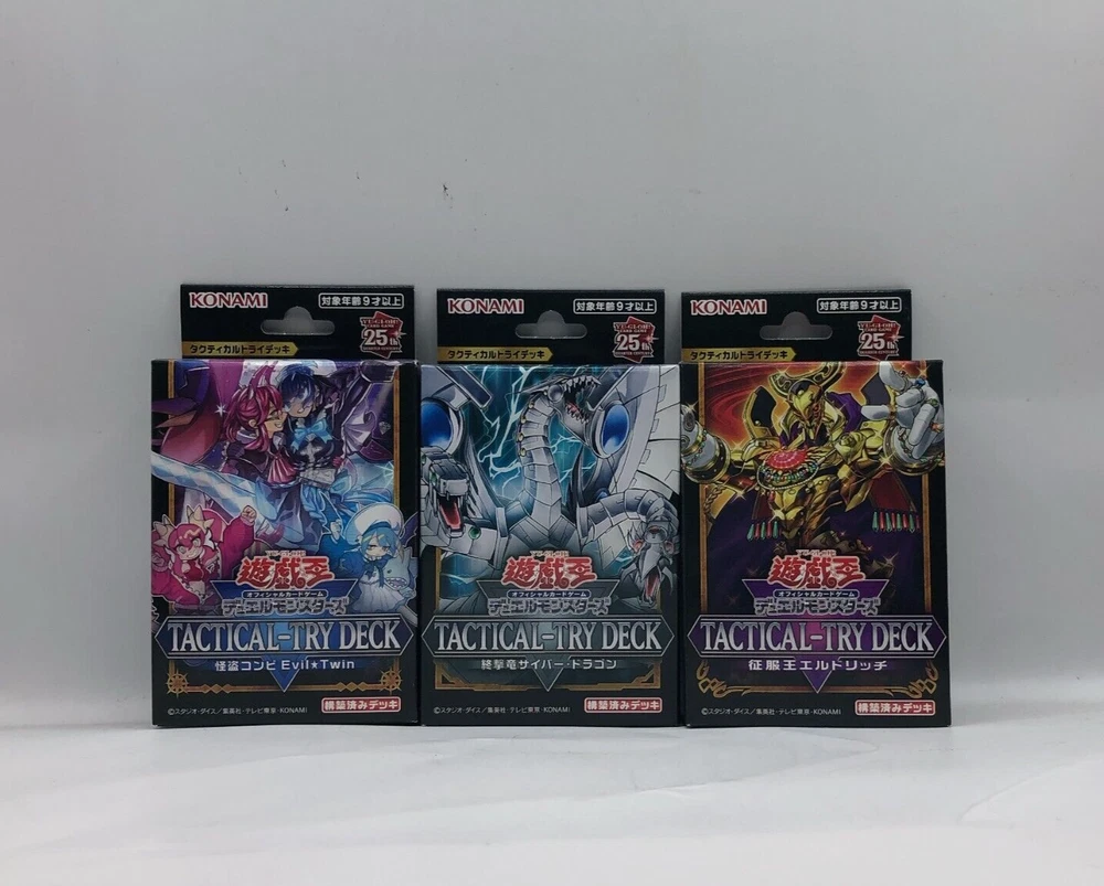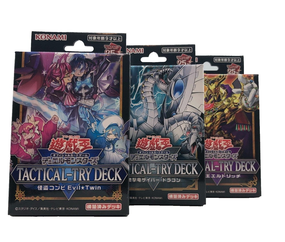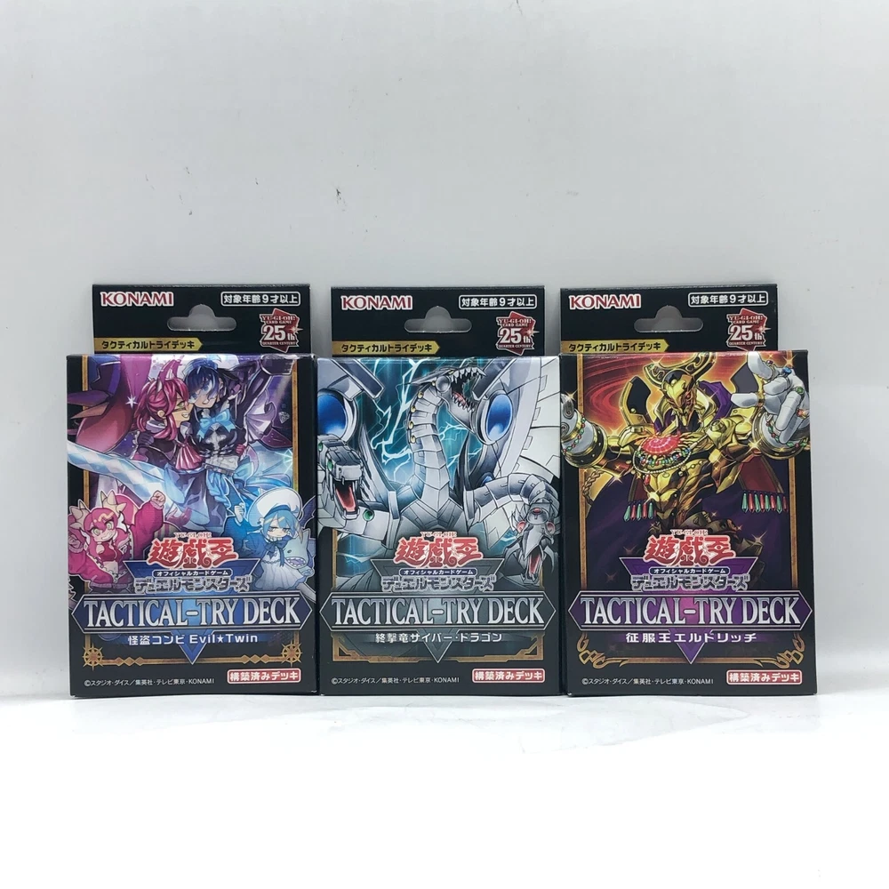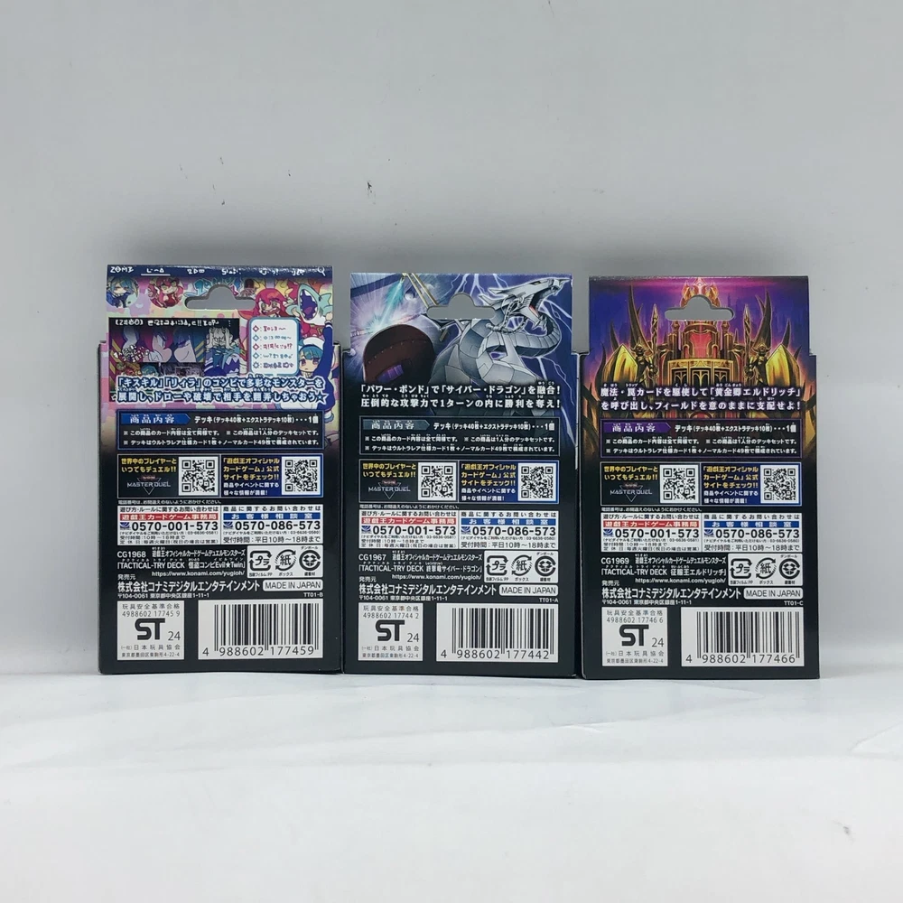Yu-Gi-Oh! OCG TACTICAL-TRY DECK Set of 3 Boxes Japanese Sealed Konami *Tactical-Try Deck: Decisive Strike Cyber Dragon Cyber End Dragon Ultra Rare *Tactical-Try Deck: Evil★Twin the Kaito Pair Evil★Twin's Trouble Sunny Ultra Rare *Tactical-Try Deck: Eldlich the Conqueror Eldlich the Golden Lord Ultra Rare Type Preconstructed Deck Number of cards:50(Ultra Rare1, Common 49) Description Condition New Please message me if you have any questions! Payment Payment We usually ship within 5 business days of receiving cleared payment.Our return policy, In the only case of unopened item package. Shipping Shipping This item will be shipped from Japan. We use the Japan Post Office or DHL or Fedex Terms of Sale Terms of Sale It's pleasure to make you happy by suggesting our recommendations.If you have any questions or request , please feel free to let us know. International Buyers - Please Note: Import duties, taxes, and charges are not included in the item price or shipping cost. These charges are the buyer's responsibility. Please check with your country's customs office to determine what these additional costs will be prior to bidding or buying.