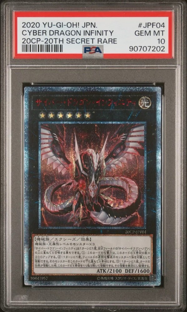 Thank you for viewing this item from CM.Collectibles 🇯🇵 Please if you have any questions about this item let me know through a message. I can also arrange for different shipping methods if you like. ————————— Yu-Gi-Oh! PSA 10 Cyber Dragon Infinity 20CP-JPF04 Japanese 20th Prismatic Secret Rare Gem Mint