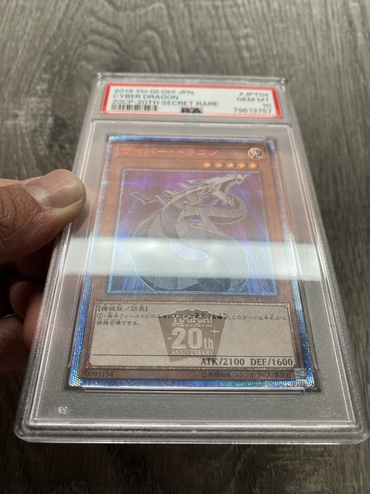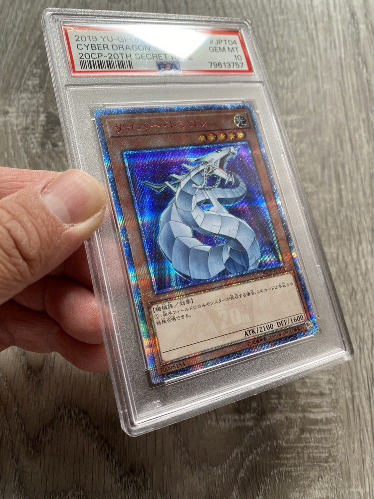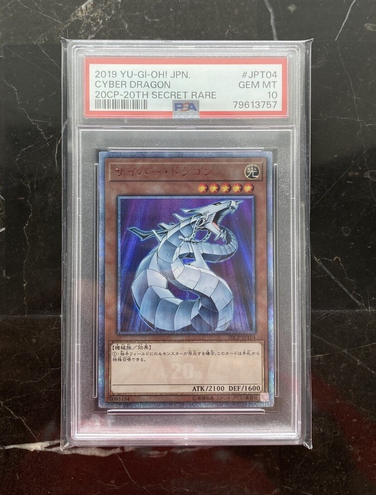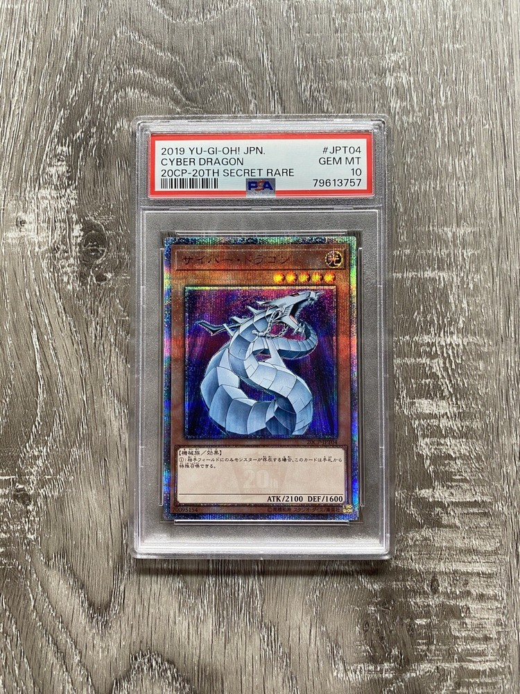 This YuGiOh card is a must-have for collectors and fans of the game. It features the powerful Cyber Dragon character and comes from the rare Surpassing 10000 Cards Commemoration Special Pack. The card is in mint condition, graded 10 by Professional Sports Authenticator (PSA) and is one of the 20th Secret Rare cards. It is a Japanese language card, with a foil finish, and its card number is 20CP-JPT03. The card is made from high-quality paperboard and has a Japanese card size. The YuGiOh card is not only a great addition to any collection but also a perfect gift for fans of the game. It is a machine-type monster card that comes with collectors' edition features and is a chase card. The card is not autographed and does not come with any custom bundles. It was manufactured by Konami in Japan in 2019.