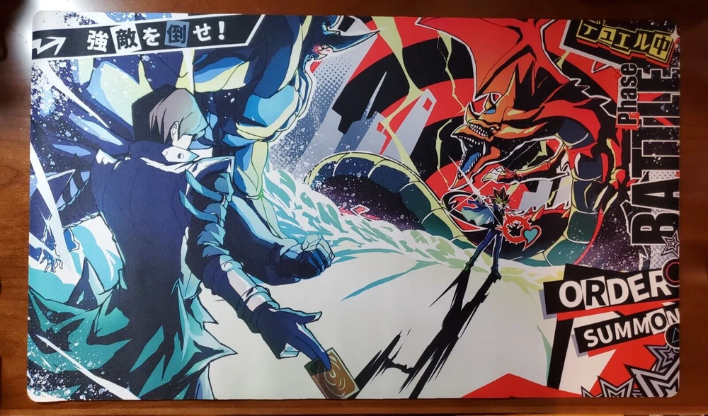 Yu-Gi-Oh! Playmat / Desktop Mat New. Never used Size: 14" x 23.5" Mats Rubberize Grip Each mat will come in a drawstring storage bag Orders will be shipped in a: Polymailer Bag Options will vary depending on available supply. Buy 2 or more and SAVE!