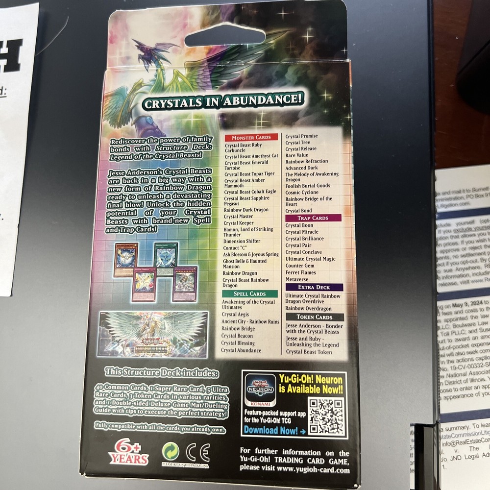 The Yu-Gi-Oh! TCG STRUCTURE DECK: LEGEND OF THE CRYSTAL BEASTS is a 46-card pack featuring Jesse Anderson as the main character. The deck is factory sealed and contains Japanese-sized cards with English language. It is a 1st edition pack manufactured by Konami in 2022 and is suitable for ages 6+. The deck is configured as a pack and is not vintage.
