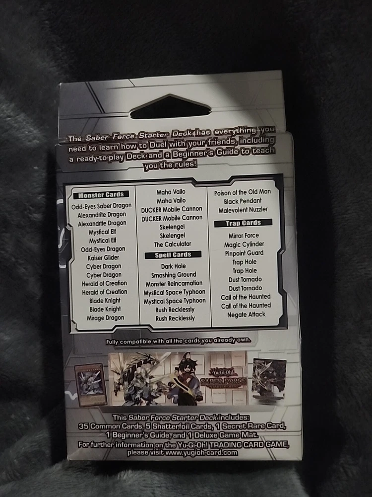 This Yu-Gi-Oh! Saber Force Starter Deck is a must-have for any fan of the trading card game. The deck comes in a standard size and is made of high-quality card stock material. It features the iconic Cyber Dragon archetype and includes 41 cards in total. The deck is in its original packaging and has never been opened, making it a great addition to any collection. The English edition is manufactured by Konami in the United States and includes features such as a starter deck and 1st edition. Get ready to embark on your Yu-Gi-Oh! adventure with this fantastic deck!