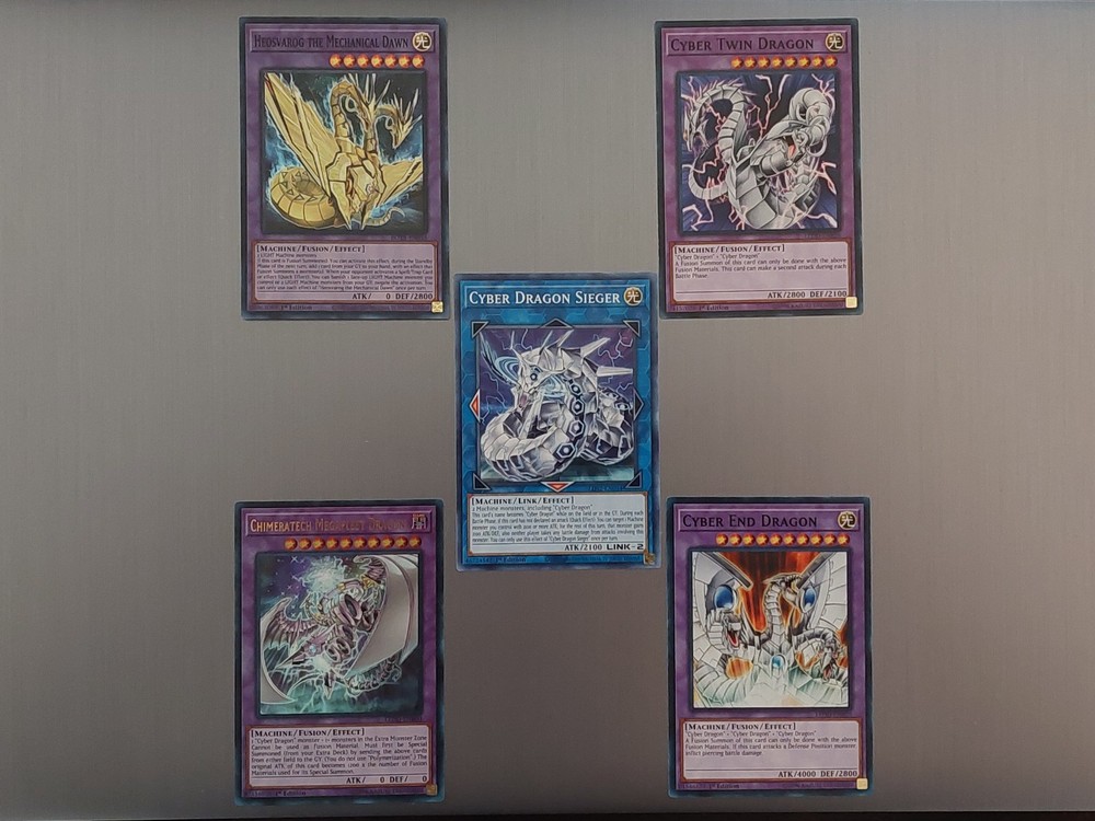 List of cards included with set: Heosvarog The Mechanical Dawn x1 Chimaeratech Megafleet Dragon x1 Cyber Dragon Sieger x1 Cyber Twin Dragon x1 Cyber End Dragon x1...