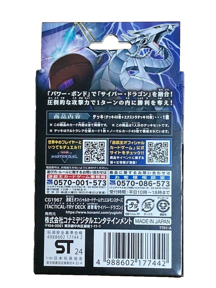 Yu-Gi-Oh! OCG TACTICAL-TRY DECK 1 Box Unopened Japanese Sealed Konami *Tactical-Try Deck: Decisive Strike Cyber Dragon Cyber End Dragon Ultra Rare Type Preconstructed Deck Number of cards:50(Ultra Rare1, Common 49) Description Condition New Please message me if you have any questions! Payment Payment We usually ship within 5 business days of receiving cleared payment.Our return policy, In the only case of unopened item package. Shipping Shipping This item will be shipped from Japan. We use the Japan Post Office or DHL or Fedex Terms of Sale Terms of Sale It's pleasure to make you happy by suggesting our recommendations.If you have any questions or request , please feel free to let us know. International Buyers - Please Note: Import duties, taxes, and charges are not included in the item price or shipping cost. These charges are the buyer's responsibility. Please check with your country's customs office to determine what these additional costs will be prior to bidding or buying.