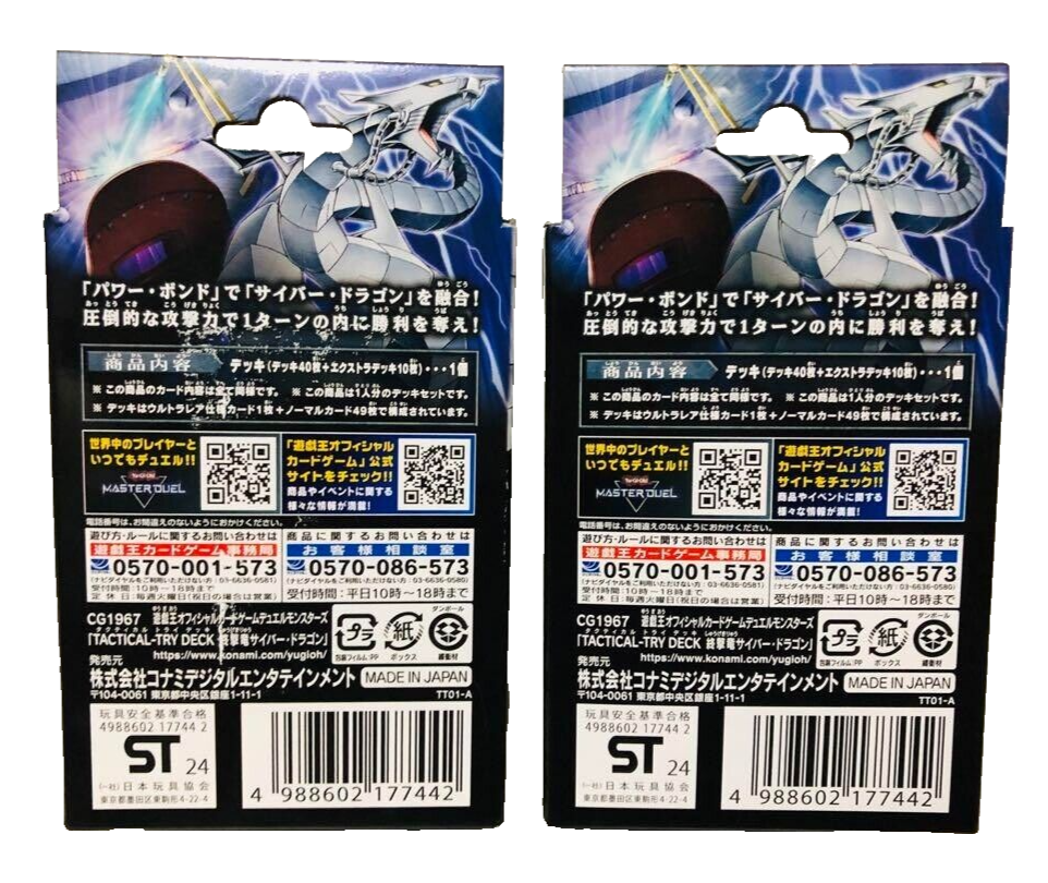 Yu-Gi-Oh! OCG TACTICAL-TRY DECK Set of 2 Boxes Japanese Sealed Konami *Tactical-Try Deck: Decisive Strike Cyber Dragon Cyber End Dragon Ultra Rare Type Preconstructed Deck Number of cards:50(Ultra Rare1, Common 49) Description Condition New Please message me if you have any questions! Payment Payment We usually ship within 5 business days of receiving cleared payment.Our return policy, In the only case of unopened item package. Shipping Shipping This item will be shipped from Japan. We use the Japan Post Office or DHL or Fedex Terms of Sale Terms of Sale It's pleasure to make you happy by suggesting our recommendations.If you have any questions or request , please feel free to let us know. International Buyers - Please Note: Import duties, taxes, and charges are not included in the item price or shipping cost. These charges are the buyer's responsibility. Please check with your country's customs office to determine what these additional costs will be prior to bidding or buying.