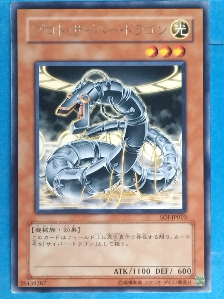 Series: Yu-Gi-Oh TCG Card Card number: SOI-JP010 R Character: Proto Cyber Dragon Language: Japanese Condition : Second hand Mint Condition Shipping : Economy international Airmail (Not Registered)