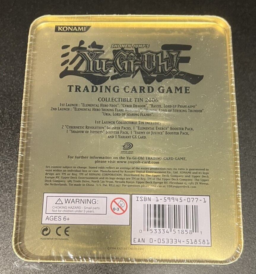Yu-Gi-Oh! TCG Cyber Dragon 2006 Collector Tin is a must-have for any collector or player of the game. The pack contains 5 unopened packs of cards, featuring the iconic Cyber Dragon character, all in English language. The tin is from Dragon manufacturer and features a number of great features including the 1st Edition, Duelist Pack, Booster, and Promo cards. This collector tin is a great addition to any CCG collection and is perfect for anyone who loves the Yu-Gi-Oh! TCG. The set was manufactured in 2006 and is still just as popular today. Don't miss out on the chance to own this fantastic set of cards. Yu-Gi-Oh! TCG Cyber Dragon Collectible Tin 2006, Sealed, Unopened. Shipping USPS Priority Mailing box in protected Bubble Wrap READ***************GOOD LUCK*******************READ Actual item for sale is shown in photos. See photos for what's included and please examine them carefully to further evaluate the item’s current in cosmetic condition. The tin sealed still in perfect conditions. BID WITH CONFIDENCE, as with all of my auctions you will receive the EXACT item pictured with detailed photos so you can know your item before buying. Please read the following: Payment is due within 24 hours from purchase. I will usually ship this item the next business day to help speed up arrival. NO International shipping, US buyers only please.