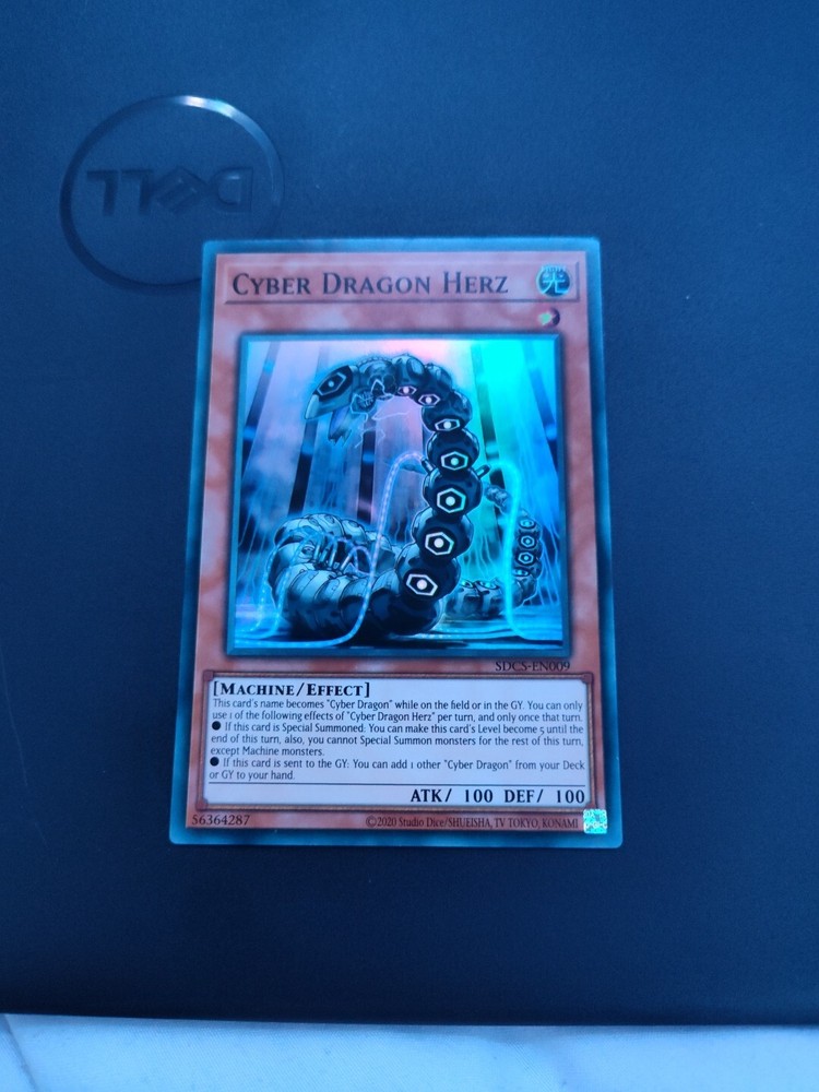 This Cyber Strike Structure Deck's SDCS-EN009 Yu-Gi-Oh! TCG card is one of the rarest finds for collectors. The card features Seto Kaiba's Cyber Dragon Herz, a machine creature type, which is a super rare holo card with an unlimited edition. The card's near mint or better condition and ungraded status is perfect for competitive play or casual collection. The 2021 card is in English language and a Japanese card size, made of card stock material, suitable for ages 6 and above. The card number is SDCS-EN009 with a finish that highlights its features, such as its effect, set, and rarity.