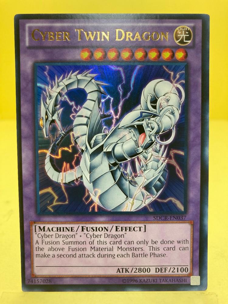 This Cyber Twin Dragon is an absolute powerhouse with 2800 ATK and a killer Machine/Fusion effect—perfect for dominating duels! The Ultra Rare finish makes it a must-have for collectors and competitive players alike. Pulling this from the Cyber Dragon Revolution deck felt amazing, and it’s been a game-changer in my Machine-focused strategy. Highly recommend grabbing one before they’re gone!
