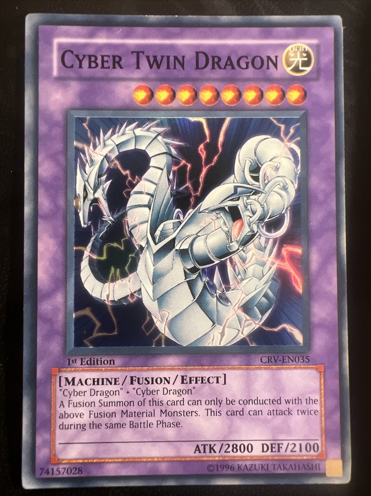 This Yu-Gi-Oh! TCG Cyber Twin Dragon card from the Cybernetic Revolution set is a must-have for any serious collector or player. With a powerful 2800 Attack/Power and 2100 Defense/Toughness, this Machine-type Fusion/Effect Monster is sure to dominate your opponents. Light-colored and 1st Edition, it features the unique card number Crv-En035, making it a rare find. Perfect for fans of the Yu-Gi-Oh! TCG, this Cyber Twin Dragon card is ideal for adding to your collection or using in battles. Its attributes include Creature/Monster Type and Card Type, while its Features include being 1st Edition. Whether you're a seasoned player or just starting out, this card is sure to impress. Buy multiple cards or item and save with combined shipping. MUST MESSAGE SELLER BEFORE CHECKOUT to receive combined shipping discount!! All cards shipped securely with sleeve and top loader. Please checkout my eBay store CardShark. New cards being added daily. Shipping usually within 1-2 days of payment. Please contact me immediately if there is ever an issue with a purchase. It will be remedied ASAP. If you are happy with a purchase please feel free to FOLLOW my store CardShark and leave some positive feedback. Thanks for shopping at CardShark and have an amazing day.
