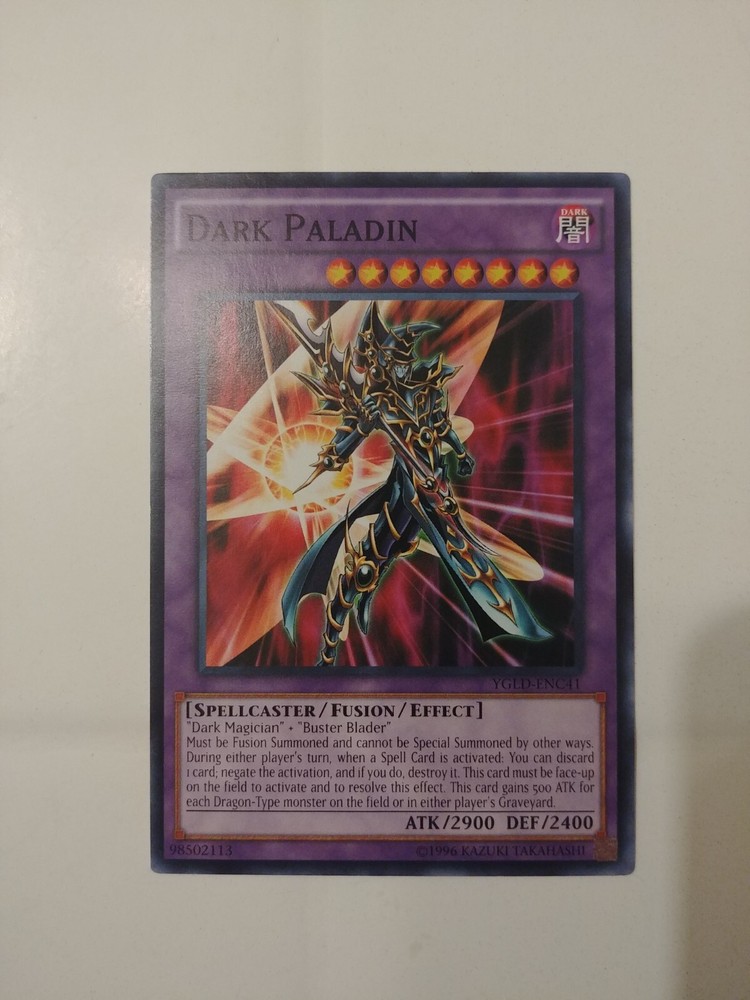 Near Mint Dark Paladin YGLD-ENC41 Common Non Holo Introducing a powerful monster card for Yu-Gi-Oh! TCG enthusiasts, the Dark Paladin (YGLD-ENC41). This standard sized card features a striking design in the color of darkness and comes in a common non holo finish. It is not autographed or vintage, and has not been modified in any way. The card name, Dark Paladin, is printed clearly on the front, along with the card number. This common rarity card is perfect for collectors and players alike who are looking to add a powerful monster card to their deck. The language of the card is English, and it is manufactured by Konami. Get your hands on this exciting card today!