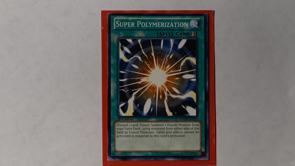 This card is a game-changer! The artwork is stunning, and its quick-play effect makes it incredibly versatile in duels. As an unlimited edition, it's more accessible while still being a powerful addition to any Cyber Dragon or fusion-focused deck. The quality is top-notch, and it arrived in perfect condition. Whether you're a collector or a competitive player, this Super Polymerization is a must-have—it elevates your strategy and looks amazing in your binder or on the field. Highly recommend grabbing one before it's gone!
