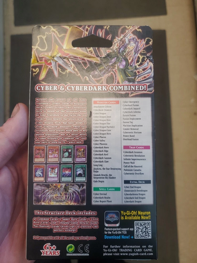 The Yu-Gi-Oh! TCG Structure Deck Cyber Strike 1st Edition is a deck of 48 cards from the Yugi set of the Yu-Gi-Oh! Trading Card Game, manufactured in 2021 by Yu-Gi-Oh! Trading Cards. This deck features Cyber Strike themed cards and is sealed in new condition, making it suitable for players aged 6 and above. The deck is in English and made of card stock, providing a fun and strategic experience for fans of the Yu-Gi-Oh! TCG.