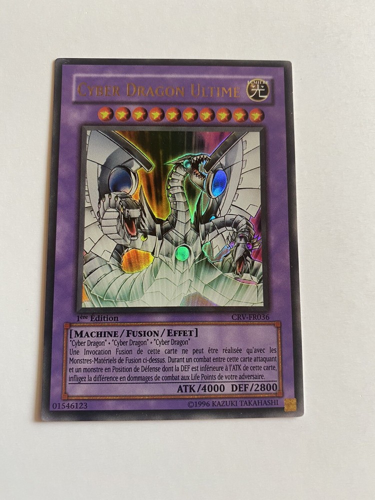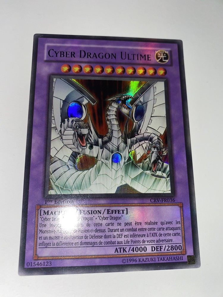 CYBER DRAGON ULTIME - CRV-FR036 en ultra rare 1ère édition Les cartes sont en français, en très bon état (near mint to mint) Je suis un vendeur sérieux. Envoie en recommandé pour plus de sécurité :) I...