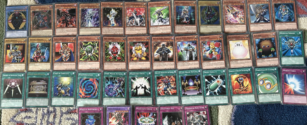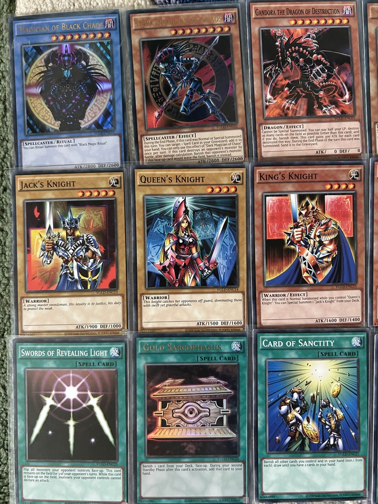 A Yu-Gi-Oh TCG Yugi Final Duel Deck - Gadget, Dark Magician of Chaos, King's Knight You will be delivered every card pictured The deck is entirely and uniformly sleeved in penny sleeves so you're ready to go as soon as they arrive. The general condition of the deck is Mint N/M condition This deck will be sent properly protected. Please check out my other listings and don't hesitate to contact me with any inquiries. Always willing to take further photographs of specific cards when requested and will work with you to create multiple listing discounts etc.