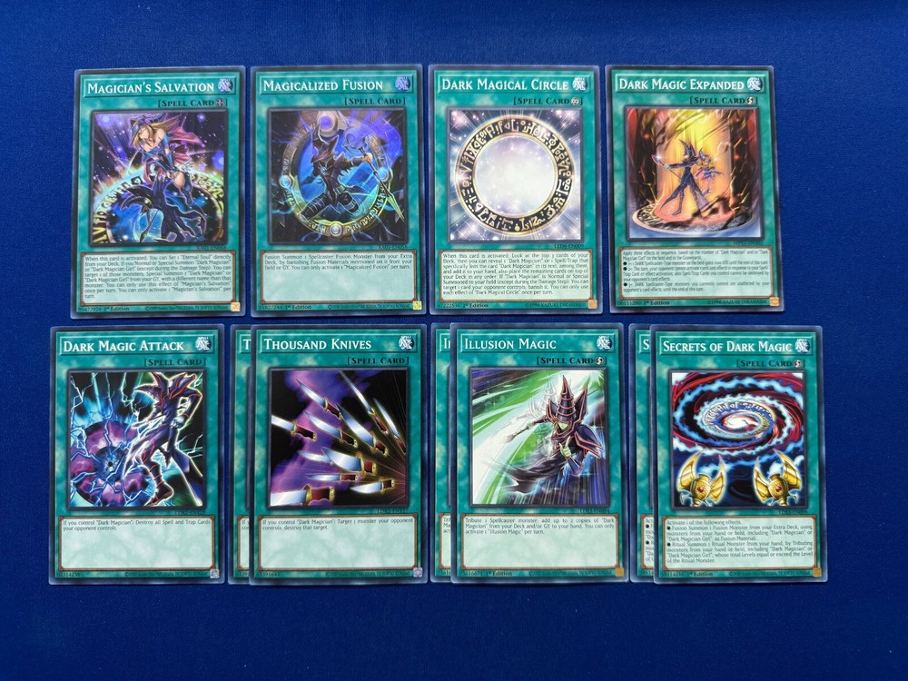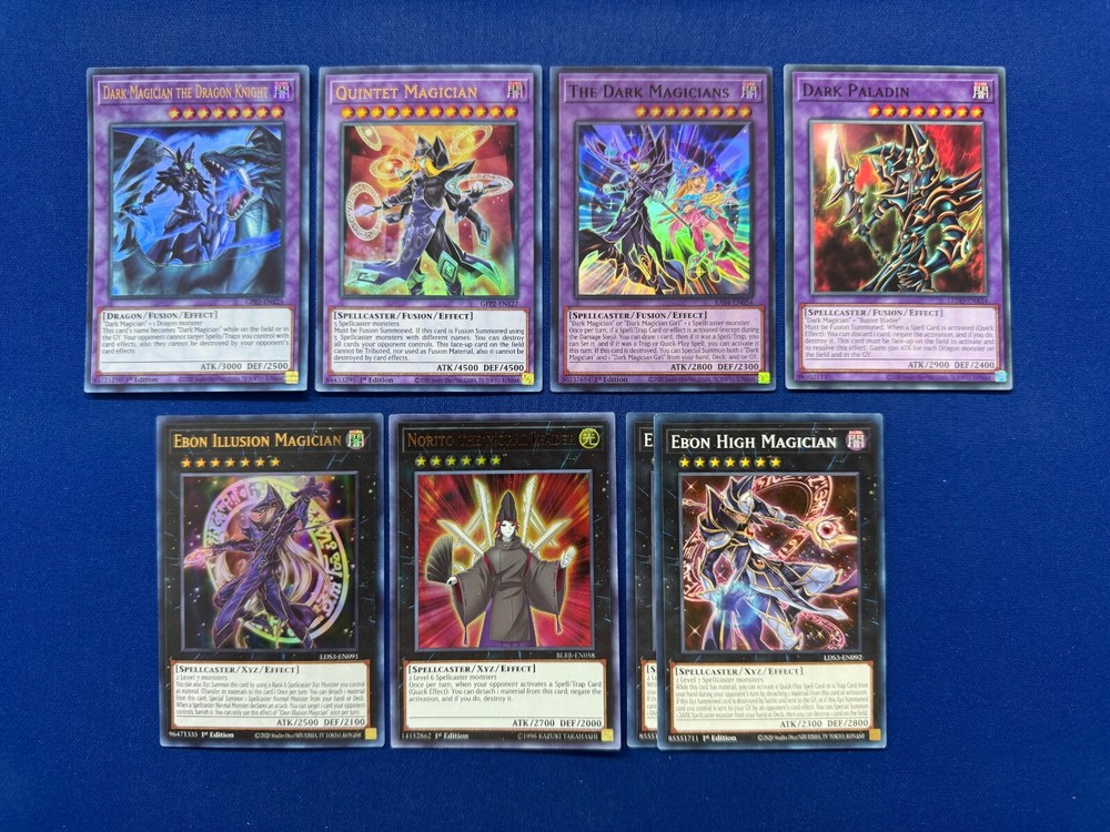 This deck was designed and tested to be ready to play! All cards are in near mint condition (Small chance of lightly played when older cards are involved). By purchasing this item you will receive the following cards: Extra (x8): Dark Magician the Dragon Knight (x1) - Ultra Rare Quintet Magician (x1) - Ultra Rare Norito the Moral Leader (x1) - Ultra Rare Ebon Illusion Magician (x1) - Ultra Rare The Dark Magicians (x1) - Super Rare Ebon High Magician (x2) - Common Dark Paladin (x1) - Common Monsters (x18): Magicians' Souls (x1) - Super Rare Apprentice Illusion Magician (x1) - Super Rare Magikuriboh (x2) - Common Magician's Rod (x2) - Common Magician's Robe (x2) - Common Magician of Dark Illusion (x2) - Common Dark Magician Girl (x3) - Common Dark Magician (x3) - Common Buster Blader (x2) - Common Spell (x11): Magician's Salvation (x1) - Super Rare Magicalized Fusion (x1) - Super Rare Dark Magical Circle (x1) - Common Dark Magic Expanded (x1) - Common Dark Magic Attack (x1) - Common Thousand Knives (x2) - Common Illusion Magic (x2) - Common Secrets of Dark Magic (x2) - Common Trap (x11): Magicians' Combination (x1) - Ultra Rare Magician Navigation (x2) - Common Magical Hats (x2) - Common Magic Cylinder (x3) - Common Magician's Circle (x3) - Common Shipping and Handling: Both Domestic and International Shipping are offered. All deck items are shipped via First Class Parcel Service (3-5 Days) and comes with tracking. Priority Mail Service (1-3 days) is also offered for Domestic buyers. Price is calculated based on the buyer's location. Payment: Payments are due within 3 days of ordering. Otherwise an Unpaid Item Case will be opened. If you have any questions or concerns, send a message and we'll answer as soon as we can! Please remember to leave feedbeck if you can, especially if you enjoy your purchase! Thank you for your patronage and support!