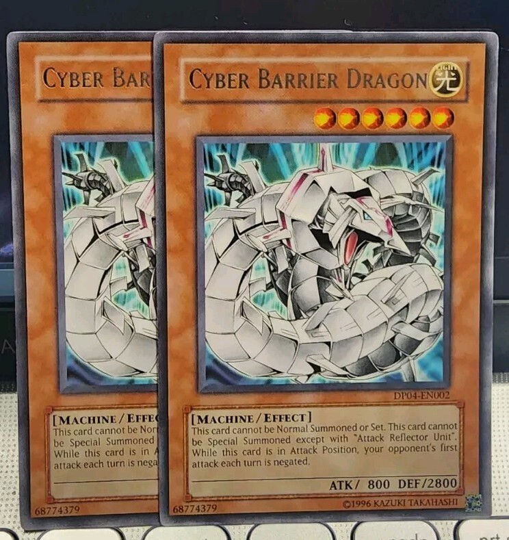 ๐คHello, my fellow collectors and players alike! Welcome to our very humble corner store on the web! This listing is for: 2 copies of Cyber Barrier Dragon, rare unlimited. You will receive 2 copies of this card! :) The Approximate Condition is: LIGHT PLAY. GRADING can be a little subjective, so please look carefully at the pictures before deciding to buy. And now for the good stuff: ๐ค PICTURE IS OF THE ACTUAL CARD YOU ARE BUYING!!!๐ ๐ F R E E S H I P P I N G!!! ๐ Items are mailed the same the or the next business day! ๐You will always GET a FREE HOLOGRAPHIC CARD with all Yugioh card sales! ๐ Safely Packed. ๐Please check our other listings for more cool cards and other interesting stuff ๐ 1 more thing: I draw for turn, normal summon a Gemini Elf, set a trap and pass turn...please be kind, im bringing great deals on cards to you! ๐คฃ๐คฃ๐คฃ