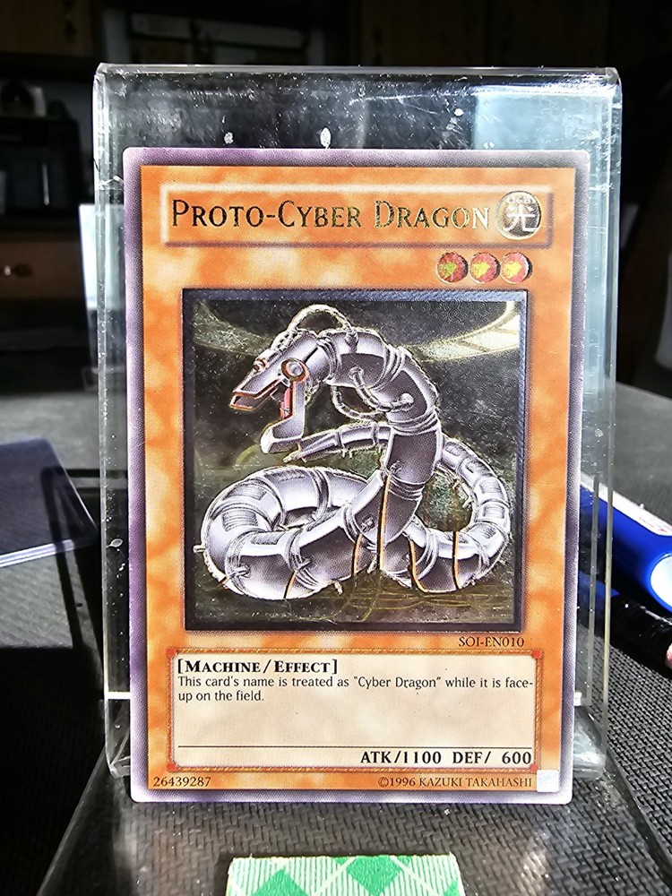 Good day. Thank you for being here. Yugioh 1st Edition Ultimate SOI-EN010 Proto Cyber Dragon LP VF Shadow Of Infinity PSA or BCCG this card, Dust scratches on back High Gloss, Sharp Clean Edges and Corners, Centering perfect. I have owned this card since release, I pulled it myself, and it has always been treated with propper everything. Shop with confidence, and if you need more pictures, just HMU. I am flexible to reasonable offers. Thank you so much, and have a great day! ☆☆☆☆☆☆☆☆☆☆☆☆☆☆☆☆☆☆☆☆☆☆☆☆☆☆ Elevate your Yu-Gi-Oh! TCG collection with the Magician of Bonds and Unity from the Shadow of Infinity set. This card, featuring the iconic duo Seto Kaiba and Joey Wheeler, is a must-have for enthusiasts and competitive players alike. As a 1st Edition Ultimate Rare card numbered SOI-EN010, it boasts a striking foil finish that captures the essence of the beloved franchise. Crafted with quality card stock and illustrated by the talented kazuki takahshi, this Effect-type card is a special summoner with an attack power of 1100 and a defense toughness of 600. Suitable for ages 8 and up, it's a treasure for both seasoned collectors and young duellists. Add a touch of nostalgia and power to your deck with this English-language, machine-type creature from the year 1995.