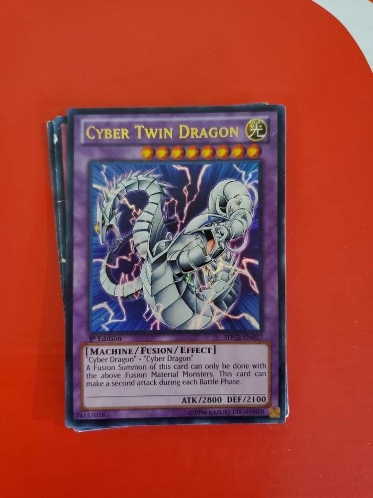 A lot of 200+ yugioh cards. The bulk of them are in new condition. Some cool ones included are cyber twin dragon, elemental hero electrum, metaphys armed dragon, and kuraz the light monarch.