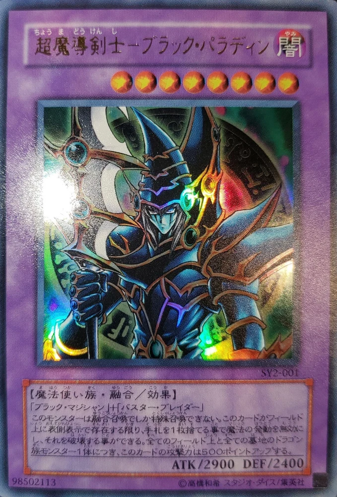 Yugioh 2003 Dark Paladin Ultra Rare SY2-001 Japanese Near Mint You will receive one. Picture above is for reference only. Will ship safely & securely. Placed inside toploader wrapped in an antiweather and antislip team bag. As a long term seller on eBay, I want every order placed with me to arrive timely and safely. You are entrusting me with your hard earned money therefore I will not only meet, but surpass your trusted expectations. Feel free to message for further pictures or questions.