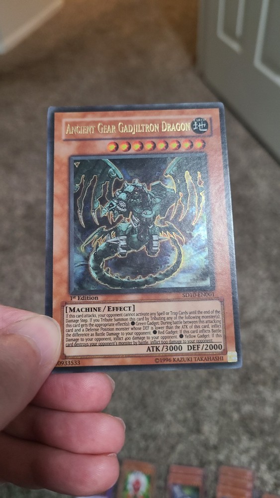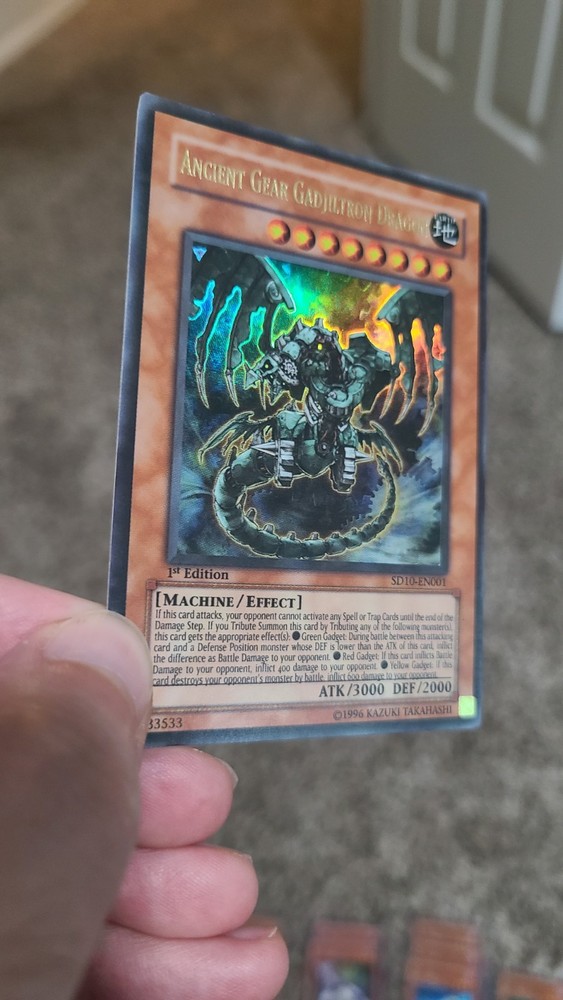 49 Card Support deck builder for Ancient Gear or Machine themed deck. This is NOT a meta deck. All cards in in NM-LP condition. Deck List below. See photos for condition. Deck will ship in Team Bag. 1 Ultra Rare 1 Super Rare 1 Rare 46 Common/Uncommon Ancient Gear Gadjiltron Dragon 1st Edition (Ultra Rare) SD10-EN 001 Cyber End Dragon Rare RYMP-EN060 Ancient Gear Golem 1st Edition SD10-EN012 x2 Ancient Gear 1st Edition SD10-EN015 x3 Ancient Gear Beast 1st Edition SD10-EN013 x3 Ancient Gear Soldier TLM-EN008 x3 Green Gadget 1st Edition SD10-EN006 Yellow Gadget 1st Edition SD10-EN008 Red Gadget 1st Edition SD10-EN007 Ancient Gear Soldier 1st Edition SD10-EN014 x2 Machina Fortress 1st Edition (Rare) BP01-EN022 Chronomaly Mayan Machine 1st Edition REDU-EN009 x2 Ancient Gear Gadjiltron Chimera 1st Edition SD10-EN002 Gear Golem The Moving Fortress 1st Edition SD10-EN010 Heavy Mech Support Platform 1st Edition SD10-EN011 x3 Ancient Gear Cannon 1st Edition SD10-EN016 Ancient Gear Knight 1st Edition BP01-EN146 Cannon Soldier 1st Edition SD10-EN009 Boot-Up Soldier - Dread Dynamo 1st Edition SD10-EN004 Ancient Gear Engineer 1st Edition SD10-EN003 Geartown TDGS-EN057 Ancient Gear Factory 1st Edition SD10-EN021 Machine Duplication 1st Edition SD10-EN029 Ancient Gear Fist 1st Edition SD10-EN020 x2 Ancient Gear Explosive 1st Edition SD10-EN019 Ancient Gear Tank 1st Edition SD10-EN018 Ancient Gear Drill 1st Edition SD10-EN022 x3 Limiter Removal 1st Edition SD10-EN025 Gravity Blaster 1st Edition ABYR-EN054 Ancient Gear Workshop 1st Edition SD10-EN017 x2 Ancient Gear Castle 1st Edition (Super Rare) SOI-EN047 Ancient Gear Castle 1st Edition SD10-EN023 7 Completed PSV-004 Stronghold The Moving Fortress 1st Edition SD10-EN031
