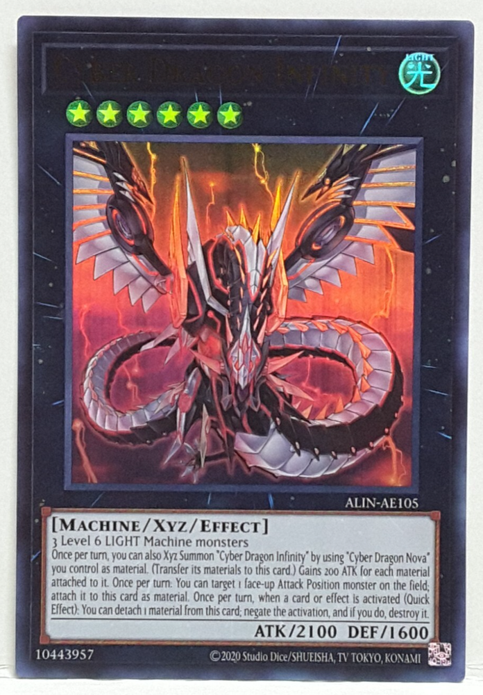 Buying Instruction – Must Read You are now buying: I) Product Description - Yugioh Asian-English Cyber Dragon Infinity ALIN-AE105 Ultra Rare II) Shipping (By Registered Post)-International/Local (DHL eCommerce or equivalent for international shipping) - 1 st Card = $11.00(Int), $11.00(local), additional item +$2.00 per card. III) Tracking number will be provided. IV) Packaging Method - The card will be insert into a sleeve and put into a top loader and put in a bubble envelope. V) Stock Availability - All items are in stock at the time of listing. - In the case of the stock being unavailable due to unforeseen circumstances, you will be able to refund. International Buyers – Please Note: Import duties, taxes, and charges are not included in the item price or shipping cost. These charges are the buyer's responsibility. Please check with your country's customs office to determine what these additional costs will be prior to bidding or buying. Powered by SoldEazy