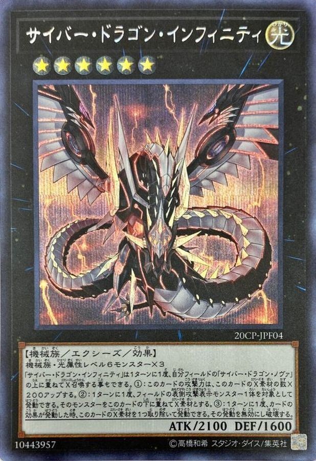 Yugioh Card 20CP-JPF04 Cyber Dragon Infinity | Secret Japanese Shipping You can save shipping fees when you buy multiple items, as I do not charge shipping fees for additional items. The delivery time will vary depending on the destination, weather conditions, and customs clearance. Terms & Conditions Import duties, taxes and charges are not included in the item price or shipping charges. These charges are the buyer's responsibilities. Please check with your country's customs office to determine what these additional costs will be prior to bidding or buying. We do not mark merchandise values below value or mark items as - gifts - the US and international government regulations prohibit such behavior.