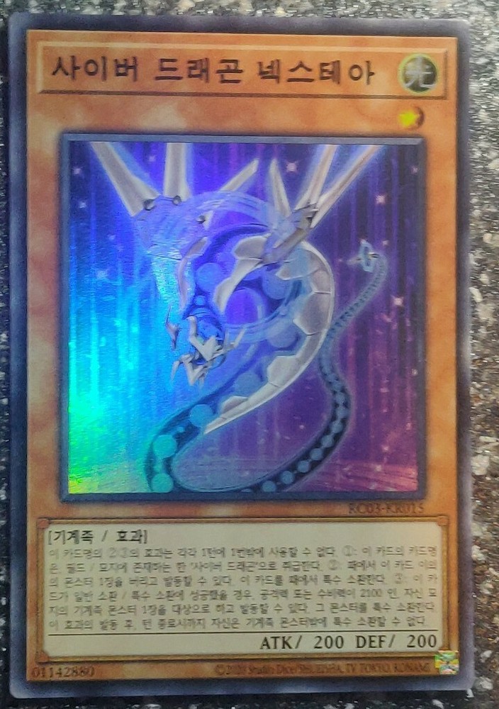 Super RARE HOLOGRAPHIC version of Cyber Dragon Nachster! VERY BEAUTIFUL HOLOGRAPHIC PATTERN ON THIS CLASSIC CARD, PLEASE LOOK AT THE PHOTOS! ABSOLUTELY A MUST HAVE Card for all collectors! The card is in Mint / NM condition. Condition is New. Shipped with USPS First Class Package. 100% AUTHENTIC BUY WITH CONFIDENCE This card is in the Korean language. Please note that this is not the English version of the card. You will receive the card in the photos in my listing in a safe protective hard case. Thank you for looking at my listing.