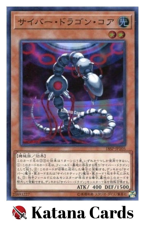 Yugioh Cards | Cyber Dragon Core Super Rare | 18SP-JP105 Japanese C ondition Near Mint to Excellent Yugioh Cards Check our Yugioh cards here. D iscounts!!! Buy more than 2 cards in my store, Save 3 - 5% off for each cards. Yugioh Cards Check our Yugioh cards here. Discounts are applied automatically by simply adding the product to your cart! If the discount is not applied automatically due to eBay's system error, please inform us of the "Discount Error" in the message after purchasing the item. We will manually apply the discount based on the number of items purchased. S hipping We usually ship within 3 - 5 business days of receiving cleared payment. Economy Shipping - No Tracking Number - It takes 7 - 30 days after shipment. Expedited Shipping - Tracking Number - It takes 3 - 10 days after shipment. If you buy more than 2 cards and choose Expedited Shipping, please select Expedited Shipping for just 1 item. We will ship the items in one package. P ayment We can be contacted at any time through eBay messages if you have any questions, comments or product requests. We will respond to you within 24 hours and do our best to help you out! We encourage our customers to contact us with any questions or concerns! We'd like to be sure you are completely satisfied with your purchase. We do not mark merchandise values below value or mark items as gifts. US and International government regulations prohibit such behavior. I nternational Buyers - Please Note Import duties, taxes, and charges are not included in the item price or shipping cost. These charges are the buyers responsibility. Please check with your country's customs office to determine what these additional costs will be prior to bidding or buying.