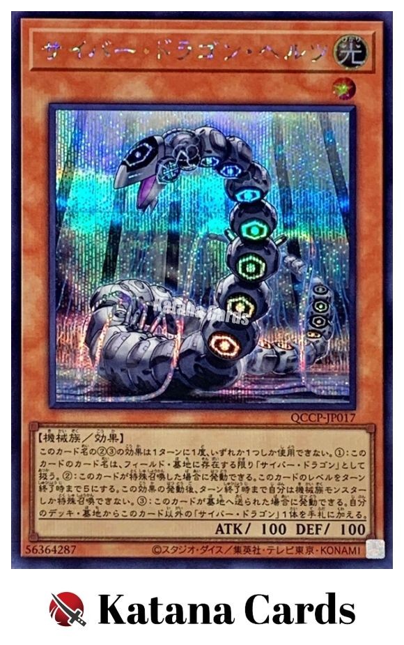 Yugioh Cards | Cyber Dragon Herz Secret Rare | QCCP-JP017 Japanese C ondition Near Mint to Excellent Yugioh Cards Check our Yugioh cards here. D iscounts!!! Buy more than 2 cards in my store, Save 3 - 5% off for each cards. Yugioh Cards Check our Yugioh cards here. Discounts are applied automatically by simply adding the product to your cart! If the discount is not applied automatically due to eBay's system error, please inform us of the "Discount Error" in the message after purchasing the item. We will manually apply the discount based on the number of items purchased. S hipping We usually ship within 3 - 5 business days of receiving cleared payment. Economy Shipping - No Tracking Number - It takes 7 - 30 days after shipment. Expedited Shipping - Tracking Number - It takes 3 - 10 days after shipment. If you buy more than 2 cards and choose Expedited Shipping, please select Expedited Shipping for just 1 item. We will ship the items in one package. P ayment We can be contacted at any time through eBay messages if you have any questions, comments or product requests. We will respond to you within 24 hours and do our best to help you out! We encourage our customers to contact us with any questions or concerns! We'd like to be sure you are completely satisfied with your purchase. We do not mark merchandise values below value or mark items as gifts. US and International government regulations prohibit such behavior. I nternational Buyers - Please Note Import duties, taxes, and charges are not included in the item price or shipping cost. These charges are the buyers responsibility. Please check with your country's customs office to determine what these additional costs will be prior to bidding or buying.