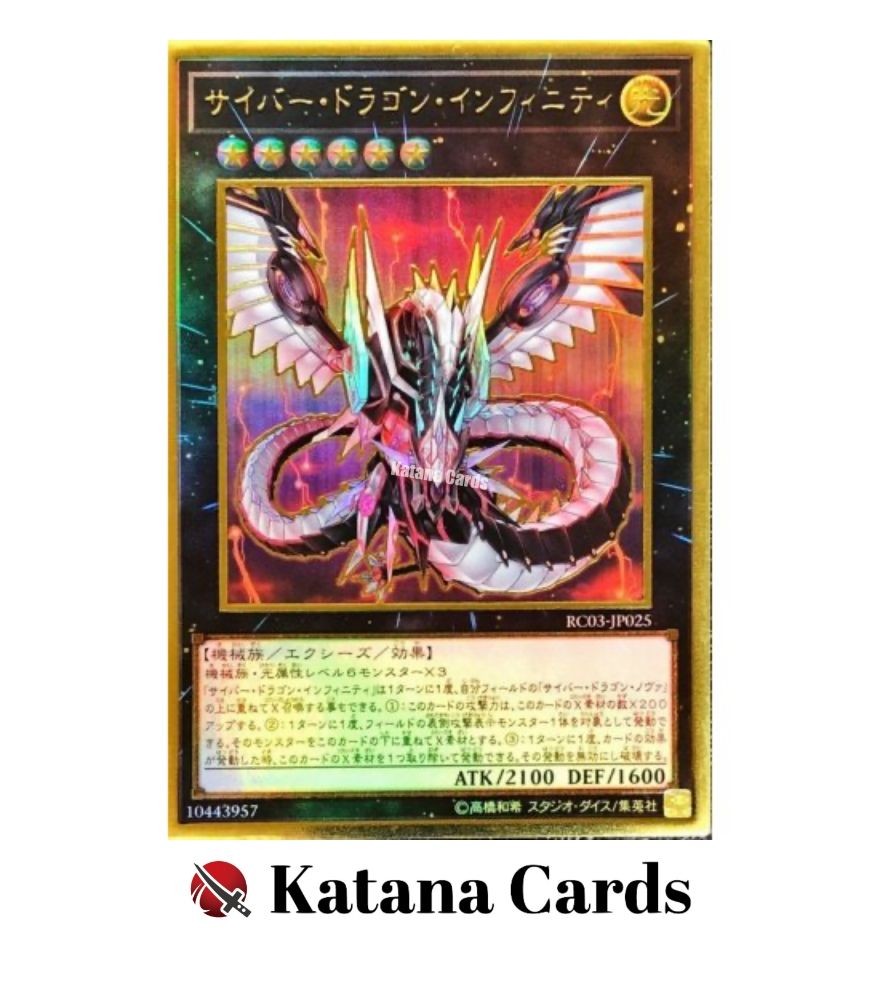Yugioh Cards | Cyber Dragon Infinity Premium Gold Rare | RC03-JP025 Japanese C ondition Near Mint to Excellent Yugioh Cards Check our Yugioh cards here. D iscounts!!! Buy more than 2 cards in my store, Save 3 - 5% off for each cards. Yugioh Cards Check our Yugioh cards here. Discounts are applied automatically by simply adding the product to your cart! If the discount is not applied automatically due to eBay's system error, please inform us of the "Discount Error" in the message after purchasing the item. We will manually apply the discount based on the number of items purchased. S hipping We usually ship within 3 - 5 business days of receiving cleared payment. Economy Shipping - No Tracking Number - It takes 7 - 30 days after shipment. Expedited Shipping - Tracking Number - It takes 3 - 10 days after shipment. If you buy more than 2 cards and choose Expedited Shipping, please select Expedited Shipping for just 1 item. We will ship the items in one package. P ayment We can be contacted at any time through eBay messages if you have any questions, comments or product requests. We will respond to you within 24 hours and do our best to help you out! We encourage our customers to contact us with any questions or concerns! We'd like to be sure you are completely satisfied with your purchase. We do not mark merchandise values below value or mark items as gifts. US and International government regulations prohibit such behavior. I nternational Buyers - Please Note Import duties, taxes, and charges are not included in the item price or shipping cost. These charges are the buyers responsibility. Please check with your country's customs office to determine what these additional costs will be prior to bidding or buying.