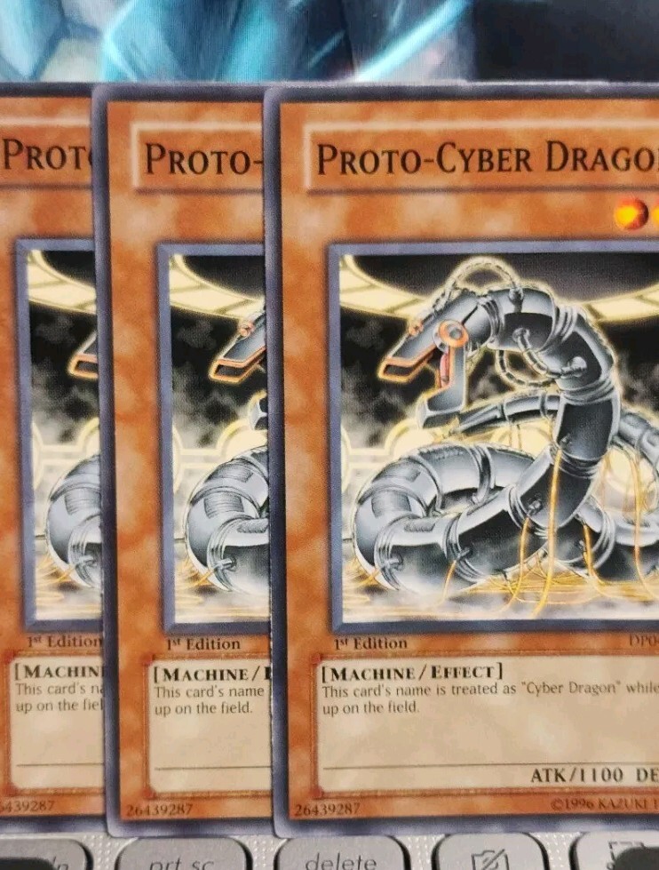 Hello, fellow collectors and players! Welcome to our very humble store! Today, we are offering: 3x proto cyber dragon common Condition: LIGHT PLAY GRADING can be a little subjective, so please look carefully at the pictures before deciding to buy. And now for the good stuff: π€ PICTURE IS OF THE ACTUAL CARD YOU ARE BUYING!!!π π F R E E S H I P P I N G!!! π Items are mailed the same the or the next business day! πAlways a free HOLOGRAPHIC CARD with all Yugioh card sales! π Safely Packed. πPlease check our other listings for more cool cards and other interesting stuff π 1 more thing: draw for turn, I activate change of heart on your monster, tribute it for zaborg, destroy your other monster, attack you directly, set a solemn and a waboku, pass turn! π