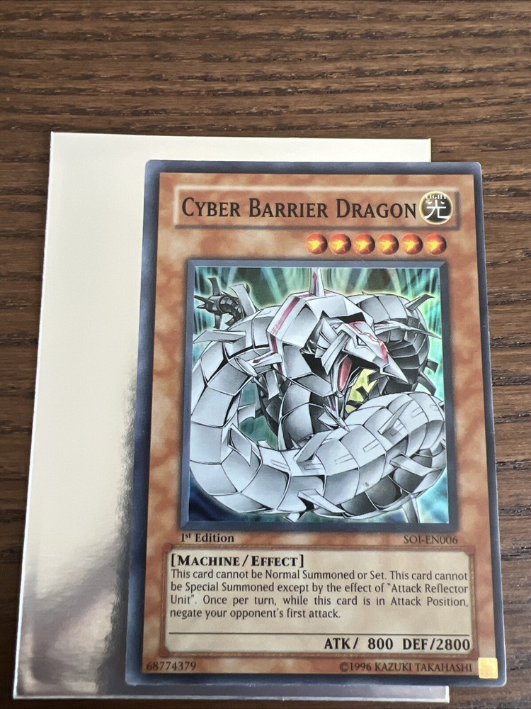 Yugioh Cyber Barrier Dragon SOI-EN006 1st Edition NM is a Super Rare card from the Yu-Gi-Oh! TCG manufactured by Konami. This Machine / Effect card boasts a foil finish, making it a highly sought-after collectible. With card number 68774379, this Cyber Barrier Dragon is a must-have for any serious collector or player looking to enhance their deck with a powerful addition.