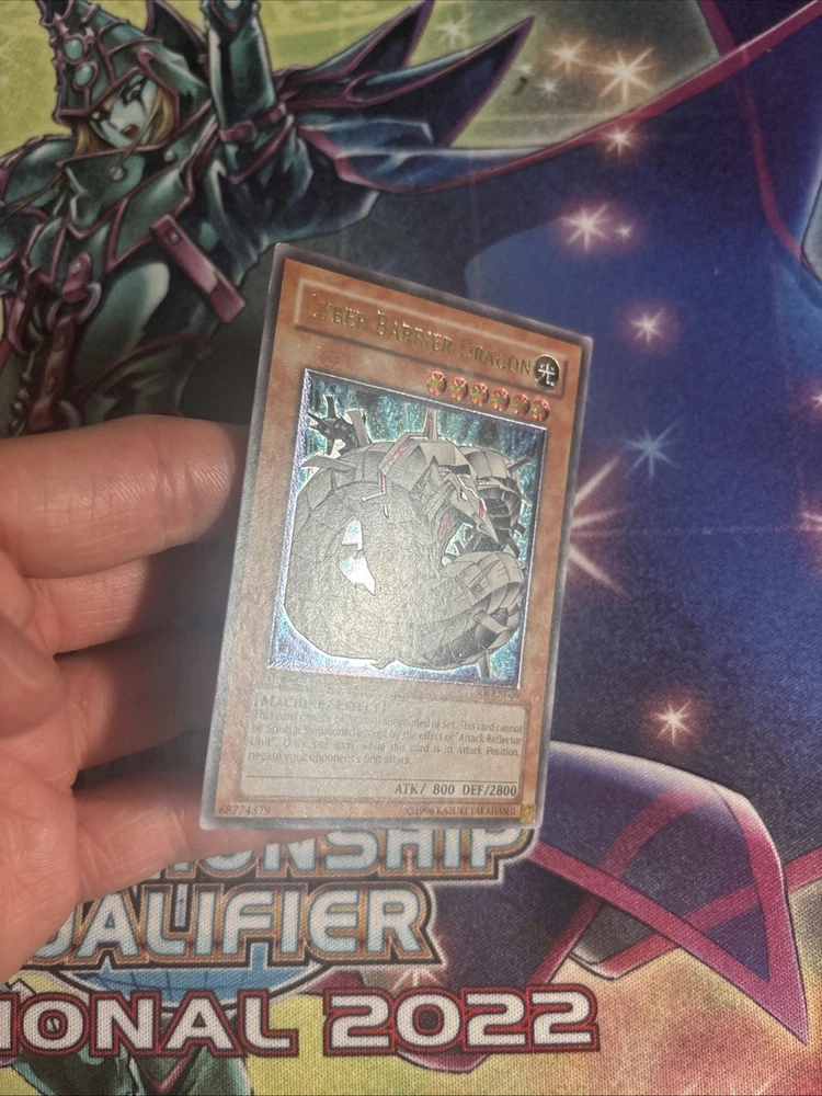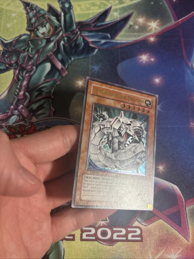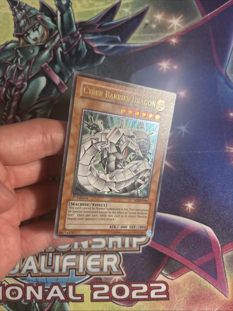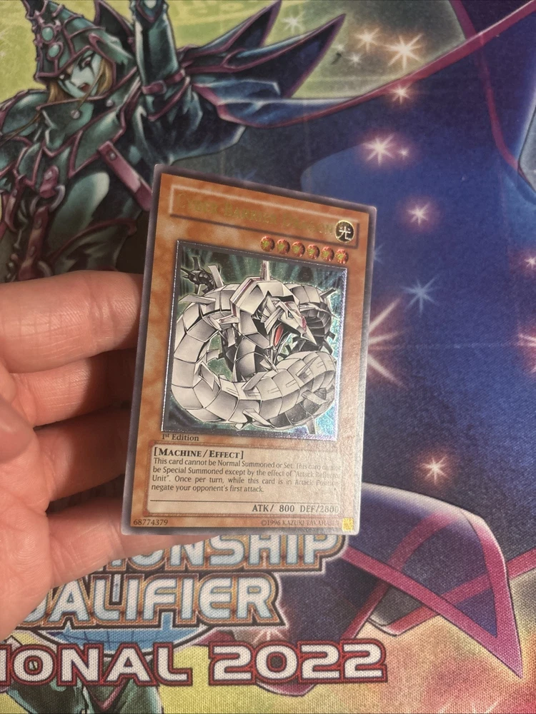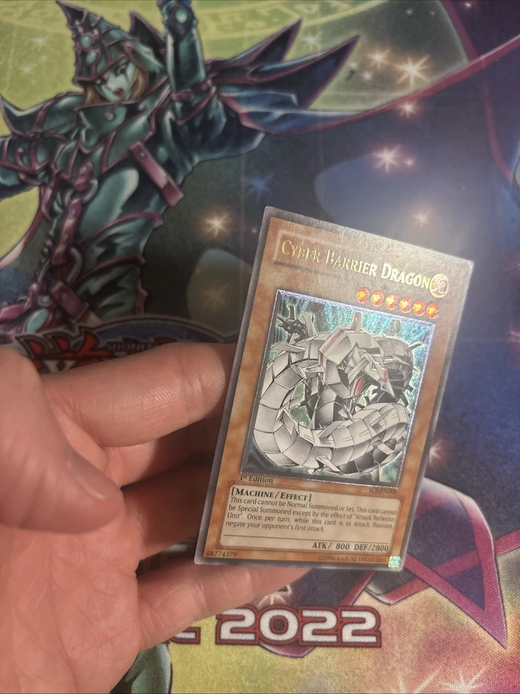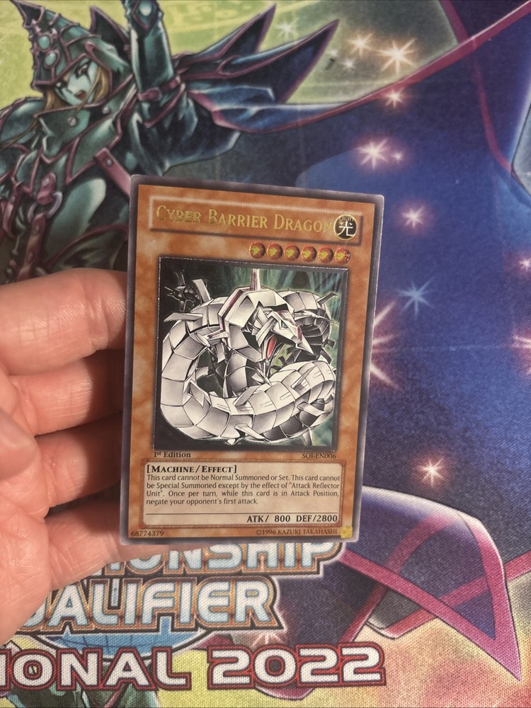 This Cyber Barrier Dragon is an absolute gem for collectors! The Ultimate Rare 1st Edition print looks stunning, and the 5ban Graphics autograph makes it extra special. As a Japanese import from 2006, the card’s crisp artwork and rarity make it a must-have for serious Yu-Gi-Oh! fans. The Angel-type monster detail and Aayla Secura’s presence add even more appeal—definitely a prized piece for any deck or display!