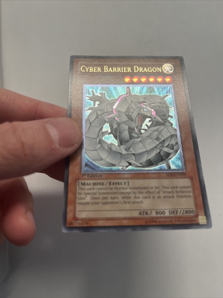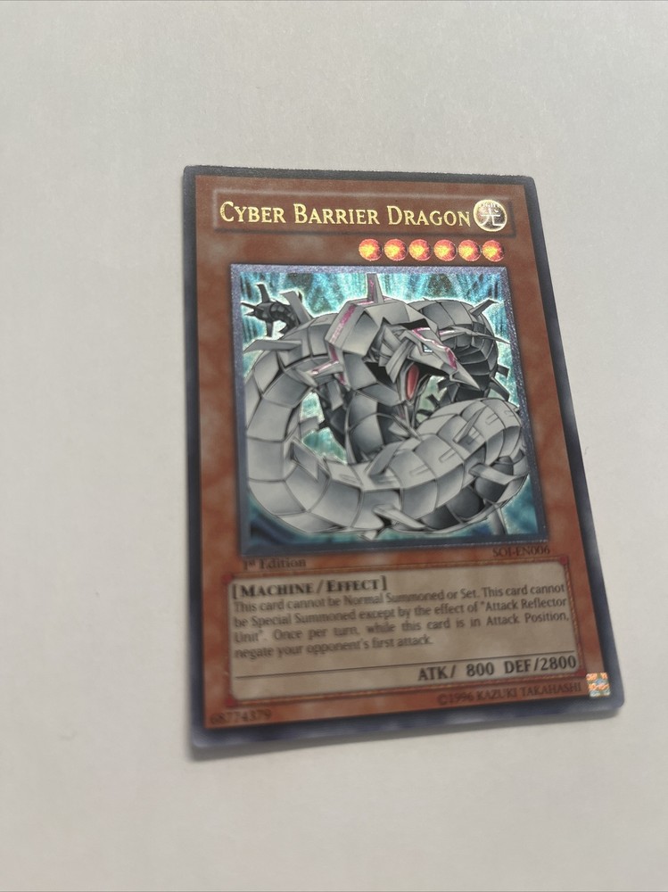 Yugioh Cyber Barrier Dragon SOI-EN006 Ultimate Rare 1st Edition Lightly Played....