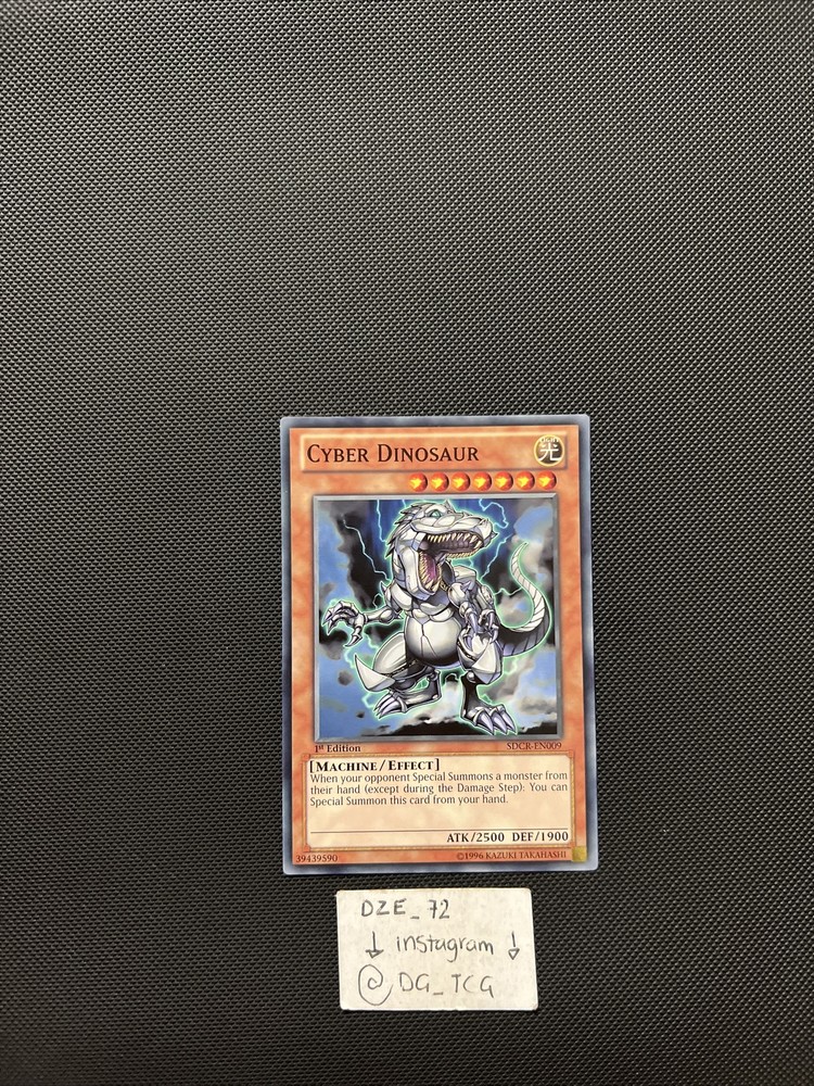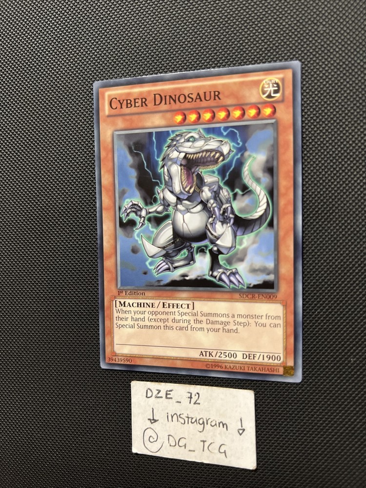 Yugioh - Cyber Dinosaur - SDCR-EN009 - 1st Edition - NM. Condition - 8-8.5/10 - near mint ⚠️COMES WITH NORMAL STANDARD SIZE ENVELOPE + TOP LOADED ⚠️ ⚠️ EXTRA $8,99 IF YOU WANT THE EXTRA PROTECTION + TRACKING & its Cardboard guarded / MAIL PADDED ⚠️ ( I DO COMBINED SHIPPING WITH ALL PURCHASES ) 📦 IF WANTED BULK MSG ME ON INSTAGRAM @DG_TCG 📲 🎉 GIVING BACK MONTH 🎉 BUY 5 + cards GET A SPECIAL GIFT & BUY 10+ cards GET A DOUBLE SPECIAL GIFT 🎉 Comes with sleeve / TOP LOADED ⚠️ Fast & Reliable Check my ebay account for more Yugioh & Pokemon & Football & NBA & UFC CARDS And MORE !!!!! ⚠️ Follow my Instagram for more card steals @dg_tcg ✅✅✅✅✅✅✅✅✅✅