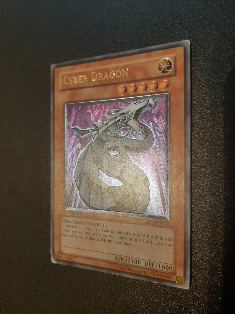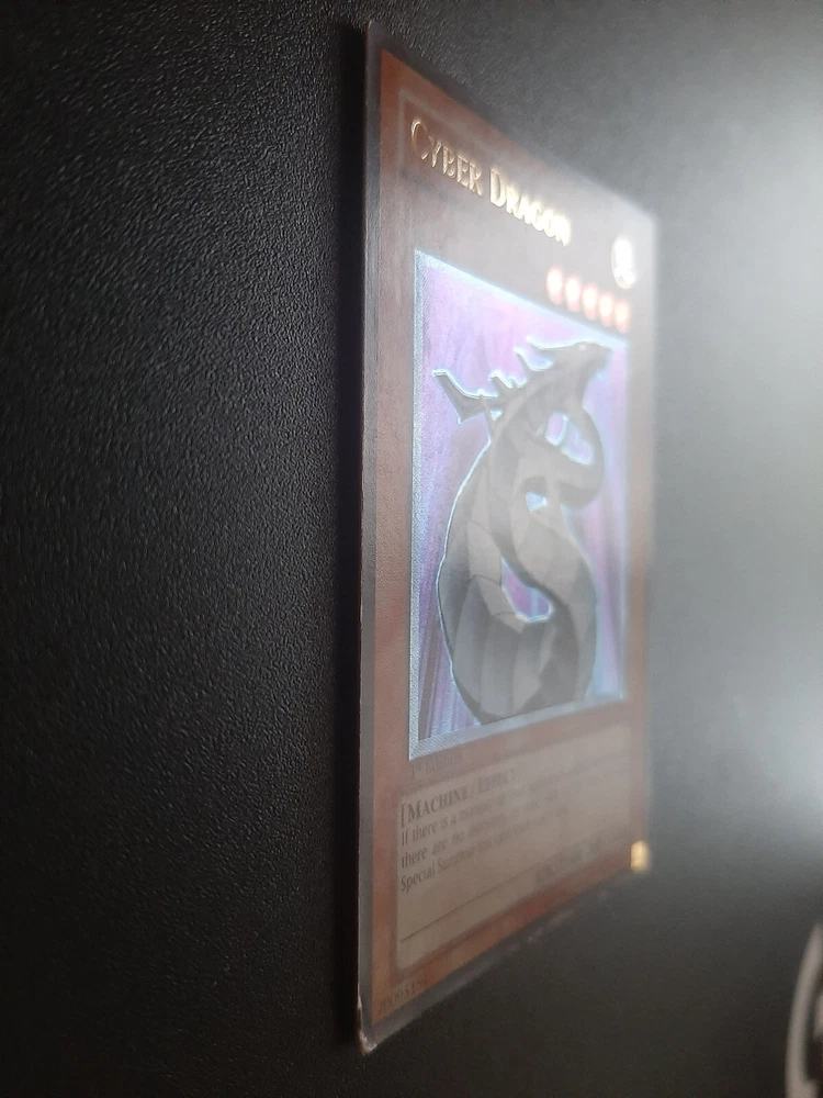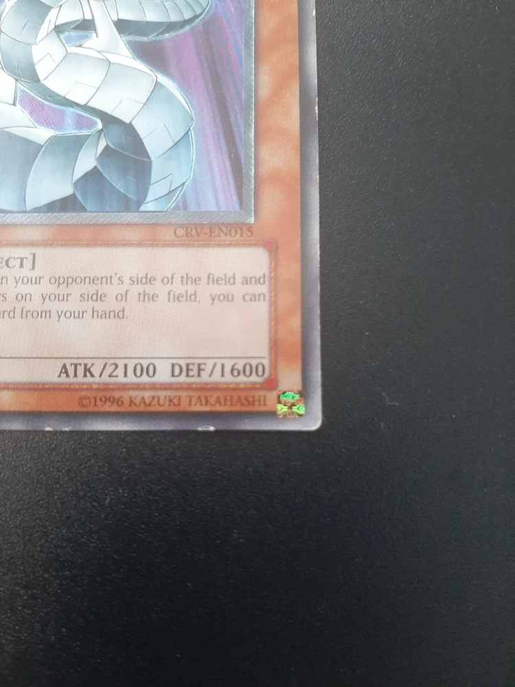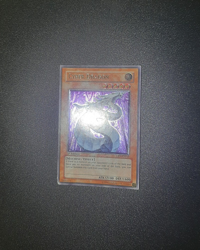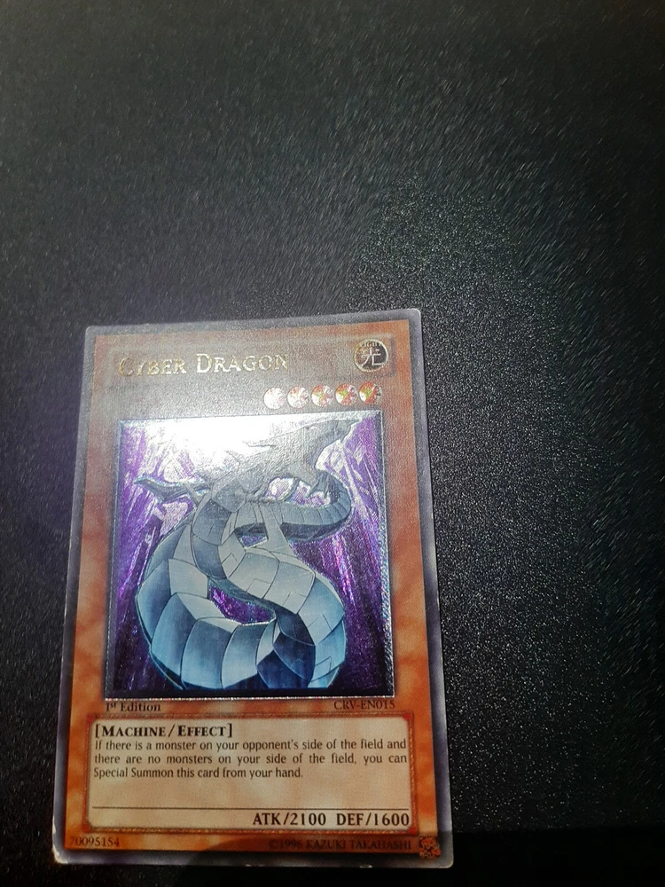 1x Yugioh Cyber Dragon CRV-EN015 1st Edition Ultimate Rare European English This is a beautiful card printed in 2005, the European 1st edition has an amazing colourful shiny holographic finish This card has been played with and is not in perfect condition, the bottom left corner is damaged whitened and creased especially on the back, the other corners/edges of the card have marks/wear and whitening, the surface of the card has many small marks and wear as expected for a vintage card of this age/condition, the back of the card has the same and also has a long horizontal line mark around 1 inch above the bottom of the card and similar markings above towards the centre of the back, this is a very old card and has many marks/whitening but the holographic shine is beautiful >> Please view all photos carefully to see the condition and everything mentioned above << I have tried my best to show the condition of this card so please see the photos, if you want any more photos please message me and I will take any you need Card will be sent extremely well protected, double sleeved inside a toploader and team bag, securely packed inside bubble wrap and cardboard Please feel free to send any offer or ask any questions Thank you!