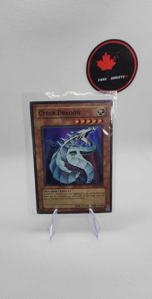 PROMO · FEEDBACKS · FOLLOW The card in the picture is the actual card you are buying. Please inspect the picture before buying and message us directly if you need more pics or have any question about the card. YOU ARE BUYING: Yugioh Cyber Dragon - CRV-EN015 - Super Rare - Unlimited Edition SHIPPING POLICY We combine shipping at 0.50$ per additional single card or 1$ per additional lot or slab. We don’t profit with shipping! We will cap the shipping rate at what it costs us if you order in bulk! We will work out a fair price if you buy more than 20 cards. Shipping To Canada Shipping To USA Payment About Items listed at 3.99$ and less will be shipped in a white enveloppe at a base cost of 2.49$ All orders between 4$ and 54.99$ will be shipped in a bubble enveloppe at a base cost of 3.99$ All orders between 55$ and 120$ will be shipped with tracking at a cost of 8.99$ All orders over 120$ will be shipped insured with tracking at a cost of 15.99$ Items listed at 119.99$ and less will be shipped tracked at a cost of 9 $ and 0.50$ per additional card All orders over 120$ will be shipped tracked at a flat cost of 16$ Payment is expected within 3 days of purchase. Message us for alternatives. We hope you will love your purchase, however if you need to return it, we have a 60 day return policy. We hope you will love your purchase, however if you need to return it, we have a 60 day return policy. We hope you will love your purchase, however if you need to return it, we have a 60 day return policy. We hope you will love your purchase, however if you need to return it, we have a 60 day return policy. Since 2021, our goal is to offer customers the highest quality cards, with the best value for their buck. Our feedback speaks for itself! If it was not already clear, we are Card Addicts, just like you! Snag your next Card Addicts deal right here! 2017-18 Upper Deck Trilogy Blue Foil Sergei Bobrovsky /999 Columbus Blue C $1.99 2021 TOPPS HERITAGE #293 BO BICHETTE CSG 9.5 C $14.99 2015 UPPER DECK CONNOR MCDAVID ROOKIE BIOGRAPHY OF A SEASON #BIOCM7 GMA 10 C $29.99 2022 UPPER DECK SYNERGY #RI-RH ROOPE HINTZ RINK INK AUTO C $29.99 2022 UPPER DECK PREMIER LUKAS REICHEL DYNAMIC IMAGERY AUTO ROOKIES /99 C $29.99 2021 UPPER DECK STATURE #133 JACK AHCAN AUTO PHOTO VARIANT GREEN RC ROOKIE /10 C $29.99 Add suggested items to your listings - Check it out on 3Dsellers.com eBay listing template by 3D sellers.com - Try for Free!