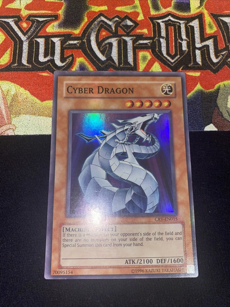 Yugioh Cyber Dragon CRV-EN015 Unlimited Super Rare LP Please see pictures for condition. Don’t hesitate to reach out if you have any questions or concerns. No lowball offers please. All my cards are 1000% authentic. See my other items for more amazing Pokemon and Yugioh cards!