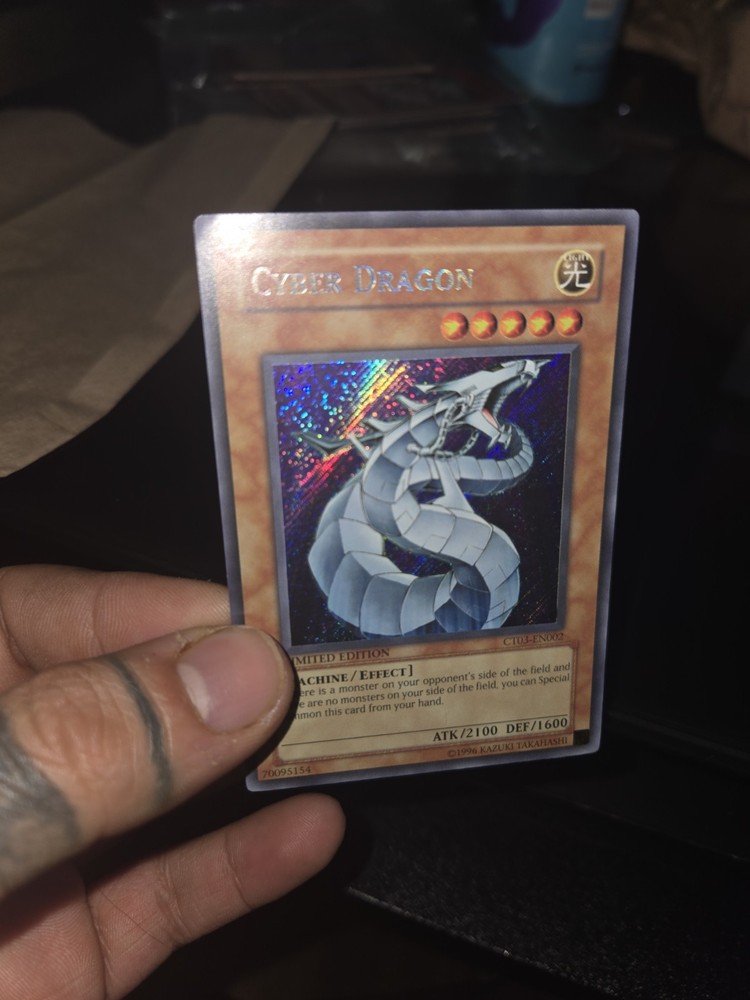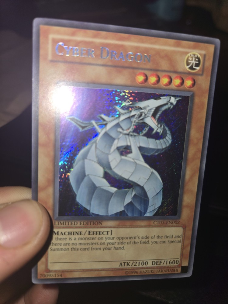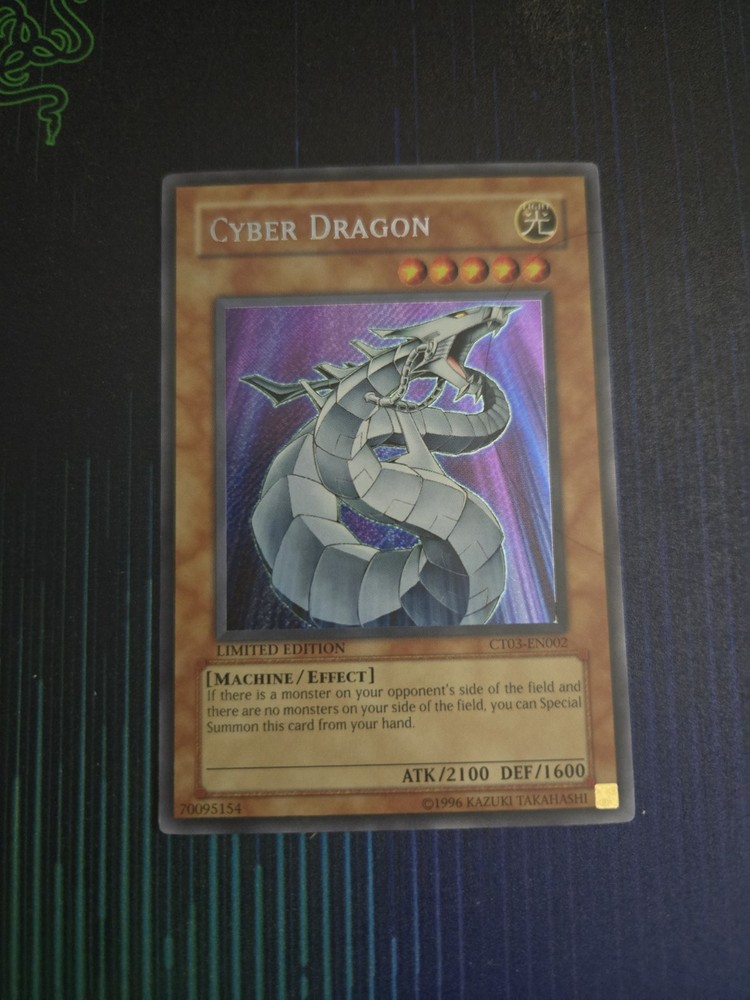 Elevate your Yu-Gi-Oh! TCG collection with the Cyber Dragon card, model CT03-EN002. This sought-after card is a must-have for both players and collectors, bringing a blend of strategic gameplay options to the table. Its sleek design and impressive abilities make it a standout addition to any deck, ensuring dominance in the arena of dueling cards. Expertly crafted to meet the standards of serious collectors, this Cyber Dragon card is a gem from the vast universe of Yu-Gi-Oh! TCG. Whether you're looking to enhance your gameplay or cherish a piece of the extensive card lore, this item is an excellent choice for anyone passionate about the iconic trading card game.