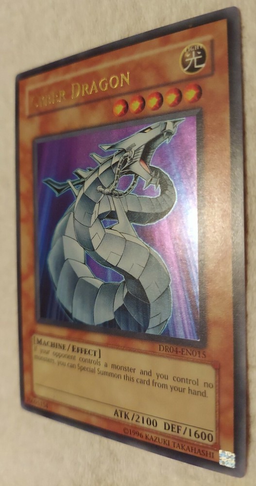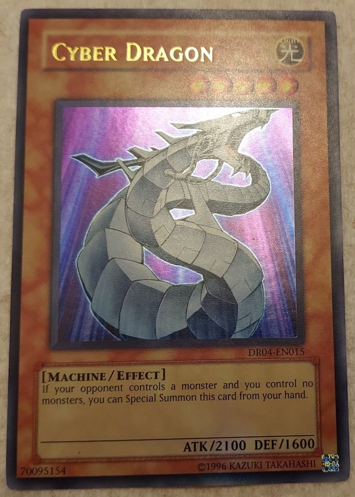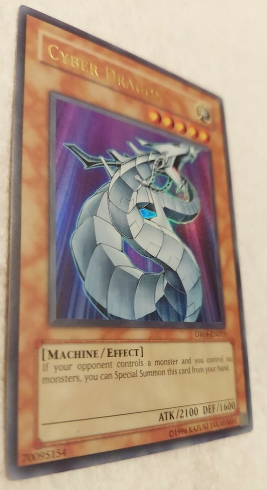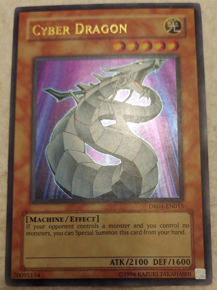 Yugioh Cyber Dragon DR04 Ultra Rare. Condition is "Used". Shipped with USPS First Class. buyer will pay for shipping INTERNATIONALLY ONLY. Free shipping for USA BUYER ONLY. Disclaimer: International Buyers Please Note; Import duties, taxes and charges are not included in the item price or shipping cost. These charges are the buyer's responsibility. Please check with your country's customs office to determine what these additional costs will be prior to purchasing. International shipment could take up to 3- 4 weeks for deliver due to lockdowns. The cards will be sent in a card sleeve and plastic top loader and extra bubble wrapper. Signature, tracking and insurance provided. Will be sent in box. Check out the other cards that are listed! If payment is not made within 12 hours of selecting a card(s), the item will no longer be entitled to you. ALL SALES ARE FINAL, NO EXCEPTIONS. All pictures and condition of cards are provided, if need more pictures send message, will provide. Disclaimer: International Buyers Please Note; Import duties, taxes and charges are not included in the item price or shipping cost. These charges are the buyer's responsibility. Please check with your country's customs office to determine what these additional costs will be prior to purchasing.