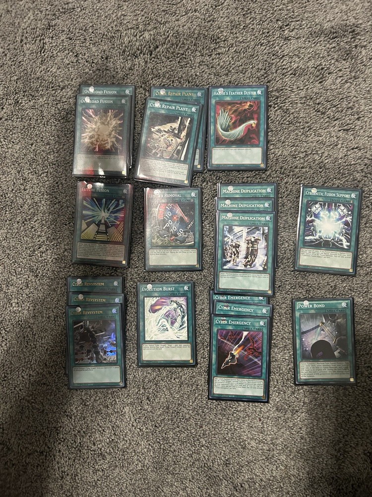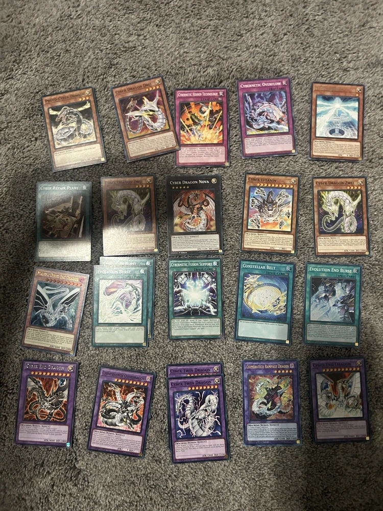 77 cards to with: A deck box 22 Bonus cards 4 Trap cards 15 Extra deck cards 17 Monsters 19 spells sleeves