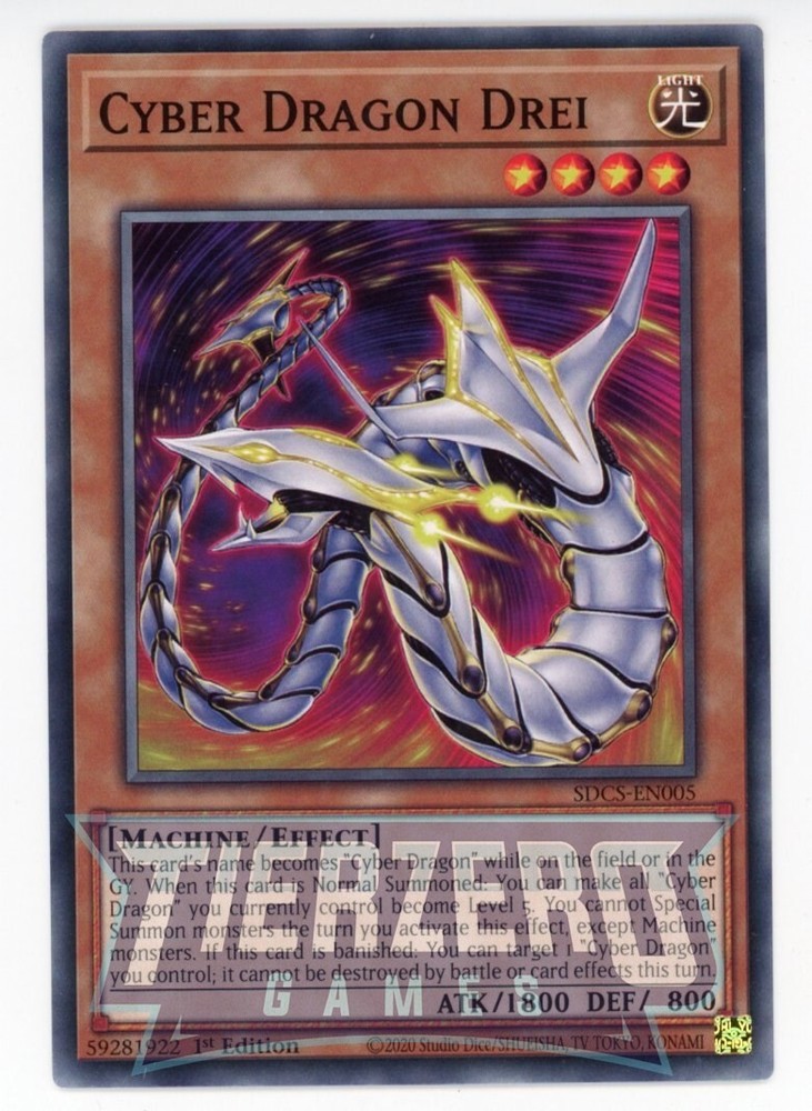 Yugioh Cyber Dragon Drei SDCS-EN005 Common 1st Edition Near Mint Near Mint Condition - Straight from pack to sleeve. TierZero Games will always do our utmost to offer the most competitive prices on the market both on eBay and on our website. Due to the nature of trading cards, please contact us if you would like a return so we can discuss this with you - however we cannot guarantee this will be an option. Card picture is an example of product - not the exact card you will receive . Pre-orders cannot be cancelled.