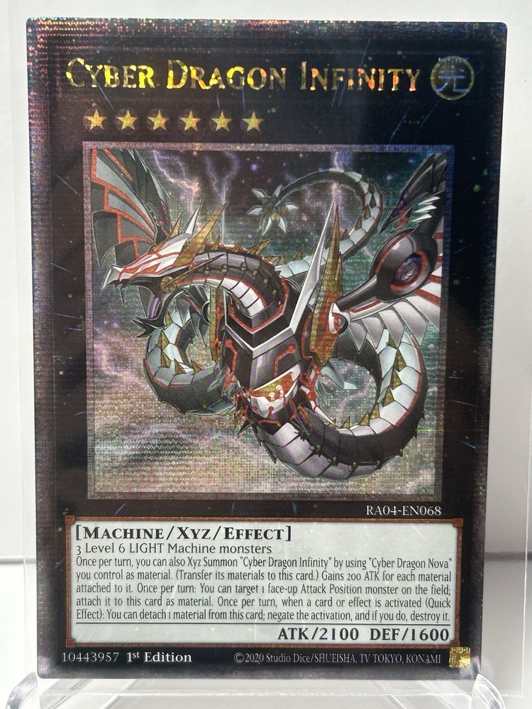 This is a Secret Rare card of Cyber Dragon Infinity from the Yu-Gi-Oh! TCG. It is a 1st Edition card manufactured by Konami. Looks great shape YG 128